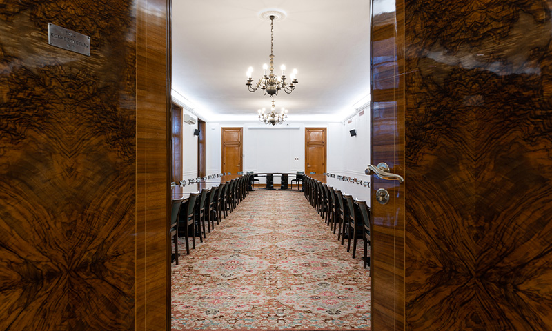 Na większe wydarzenia udostępniany jest również dziedziniec z odrestaurowaną fontanną oraz hol główny z tarasem wychodzącym na park i Muzeum Narodowe – idealny na przerwy kawowe lub wieczorne spotkania w nieco mniej formalnym tonie.