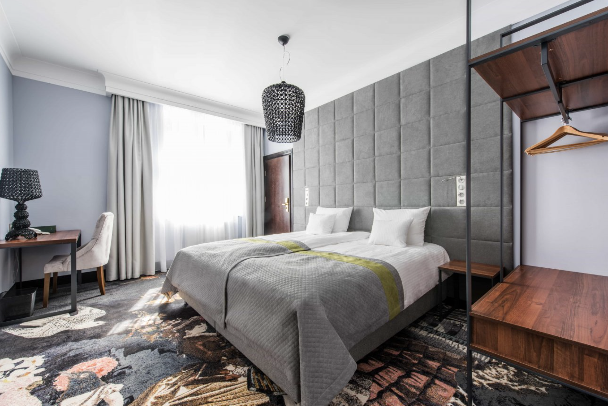 Po dniu pełnym spotkań i prezentacji Goście mogą odpocząć w komfortowych pokojach, w których natura wciąż gra pierwsze skrzypce. Drewniane elementy, naturalne tkaniny i ciepłe barwy wnętrz tworzą atmosferę przytulności i spokoju.