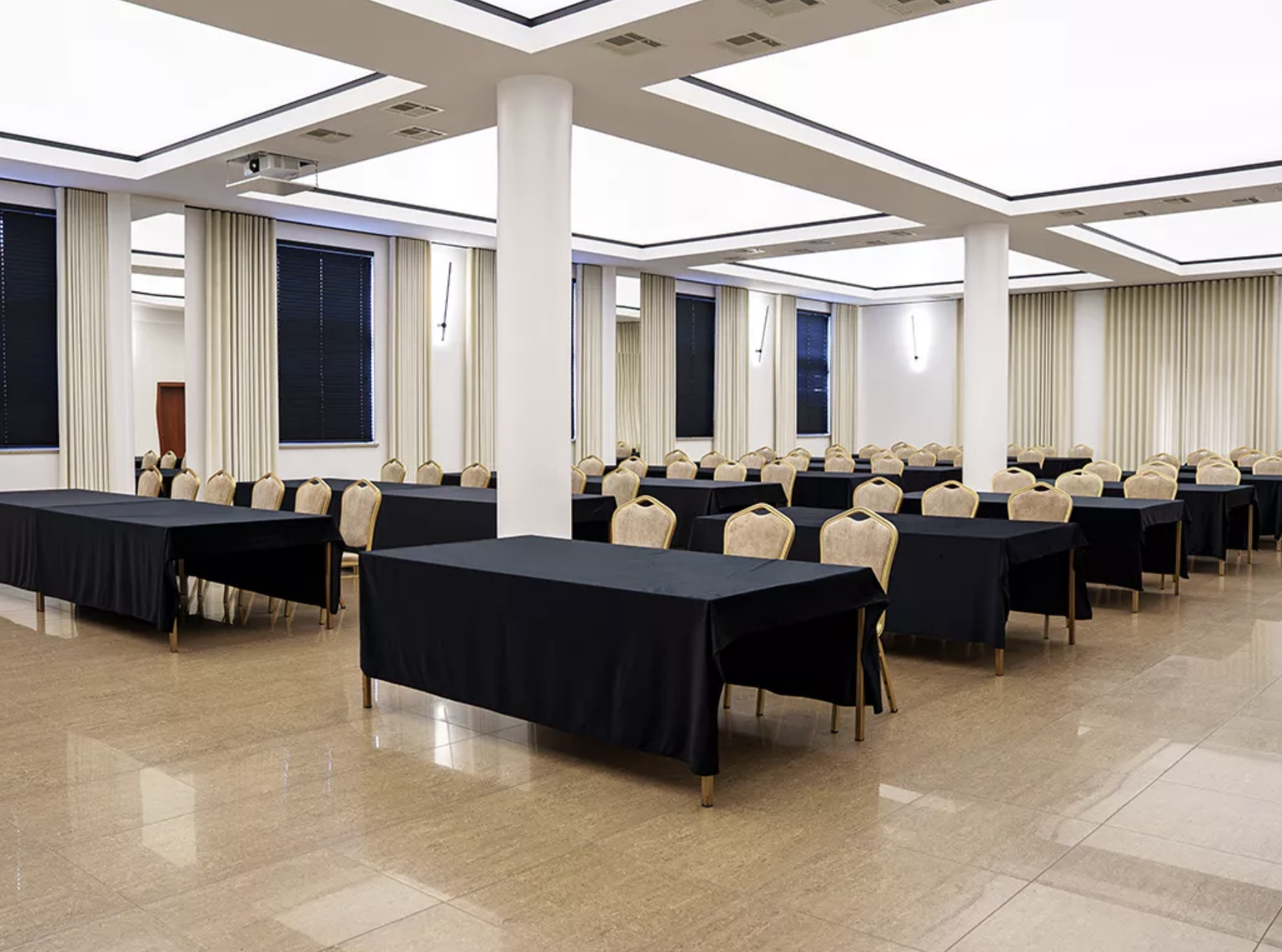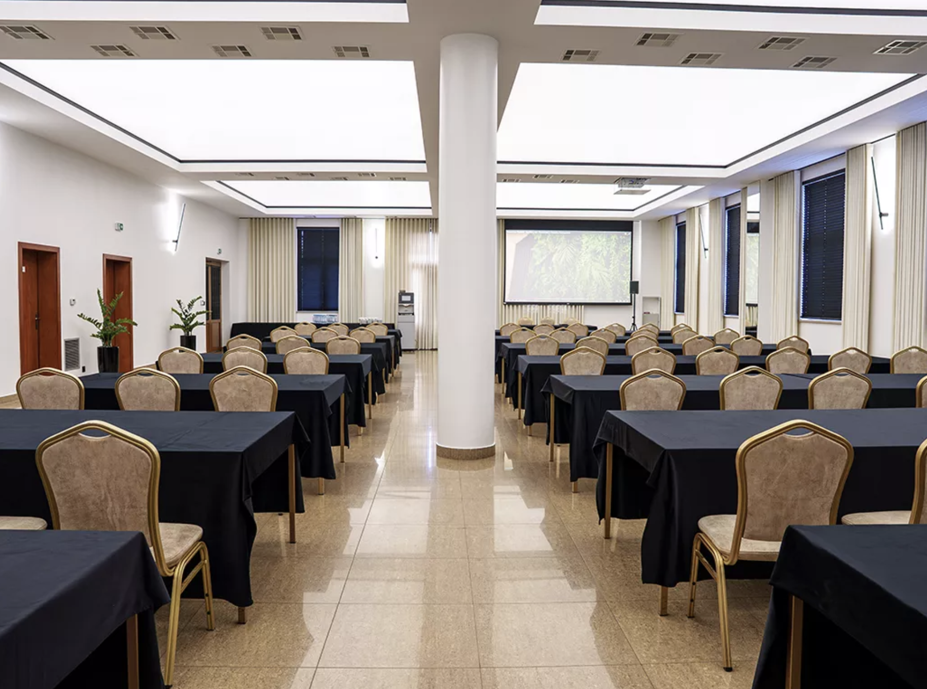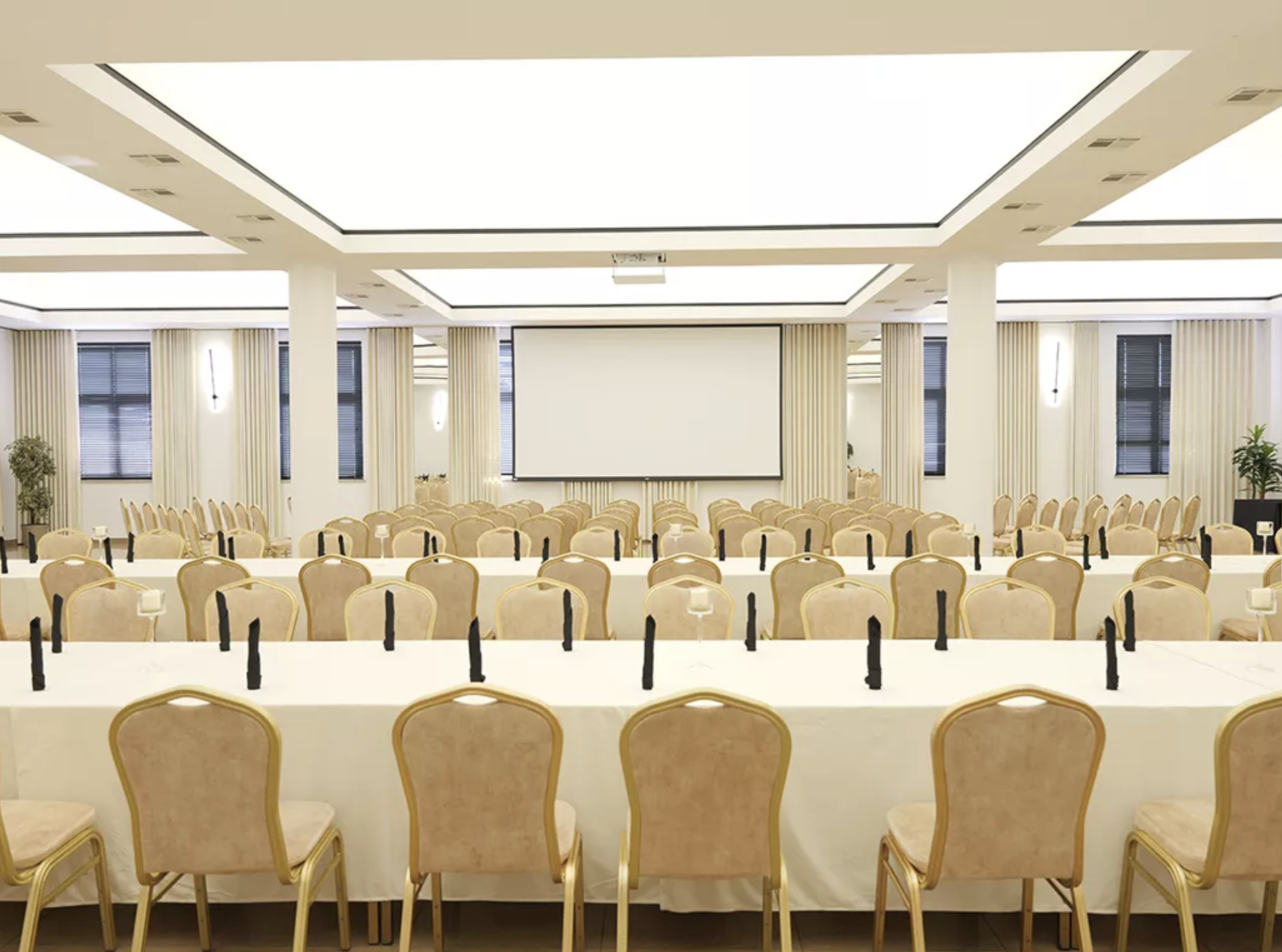 Największa Duża Sala Konferencyjno-Bankietowa II o powierzchni 400 metrów kwadratowych umożliwia organizację wydarzeń nawet dla 360 osób. Sprawdza się przy kongresach, dużych konferencjach, galach i bankietach firmowych. Nieco mniejsza Duża Sala Konferencyjno-Bankietowa I pomieści do 180 uczestników i oferuje elastyczne możliwości aranżacji – zarówno przy szkoleniach, jak i eventach korporacyjnych.