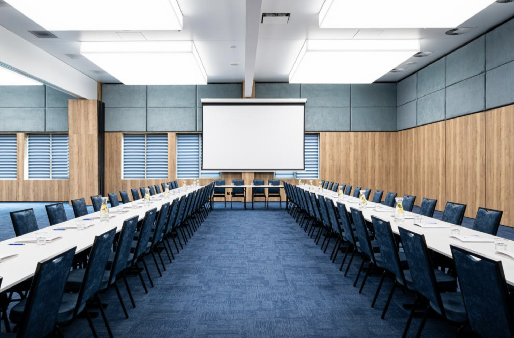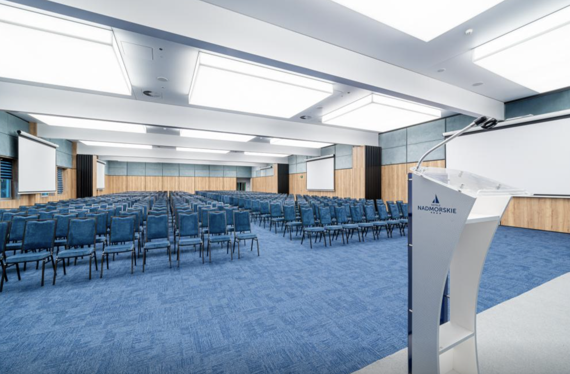 Największa sala konferencyjna, z możliwością podziału na trzy niezależne części, sprawdza się przy konferencjach i kongresach nawet do 500–560 uczestników. Równolegle funkcjonują mniejsze sale, które dobrze pracują przy szkoleniach, warsztatach czy spotkaniach zarządu. Każda z przestrzeni ma dostęp do światła dziennego, klimatyzację oraz możliwość pełnego zaciemnienia - standard, który w praktyce robi różnicę przy dłuższych wydarzeniach.