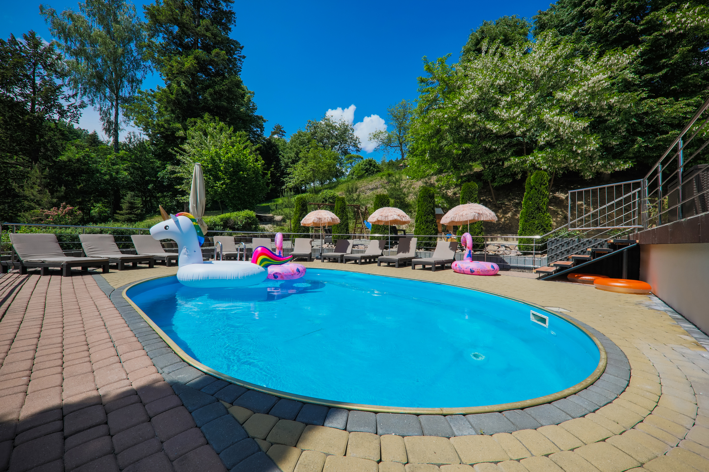 Obiekt swoim Gościom oferuje również szeroki wybór dodatkowych udogodnień! Znajdzie się tutaj wyśmienita Restauracja pod Sosną, która serwuje znakomite dania kuchni polskiej i europejskiej. Przygotowywane ze świeżych składników potrawy wyróżniają się oryginalnym smakiem, który z pewnością oczaruje wszystkich gości. Dodatkowo jedynie parę kilometrów od obiektu działa cenione Kąpielisko Chorwacja z piaszczystą plażą i wypożyczalnią sprzętów wodnych. Nie zabraknie też dużego ogrodu z miejscem na imprezy integracyjne w formie grilla lub ogniska oraz gier zespołowych takich jak stół bilardowy, ping-pong, czy piłkarzyki. Znajdzie się też coś dla relaksu - w wolnej chwili Goście mogą udać się na basen lub obyć odprężający seans w saunie.