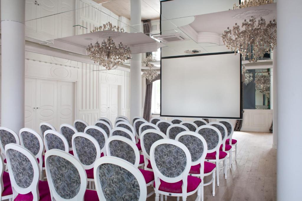Wnętrza są jasne, przestronne, utrzymane w eleganckiej kolorystyce z delikatnymi akcentami amarantowymi i subtelnym światłem kryształowych żyrandoli. Takie otoczenie sprzyja nie tylko prezentacjom i wykładom, ale także kameralnym rozmowom biznesowym czy sesjom kreatywnym. Sale wyposażono w nowoczesny sprzęt audiowizualny i multimedialny, system nagłośnienia oraz klimatyzację, co pozwala na przeprowadzenie wydarzeń o różnej skali – od kilkuosobowych spotkań po większe konferencje i kongresy.