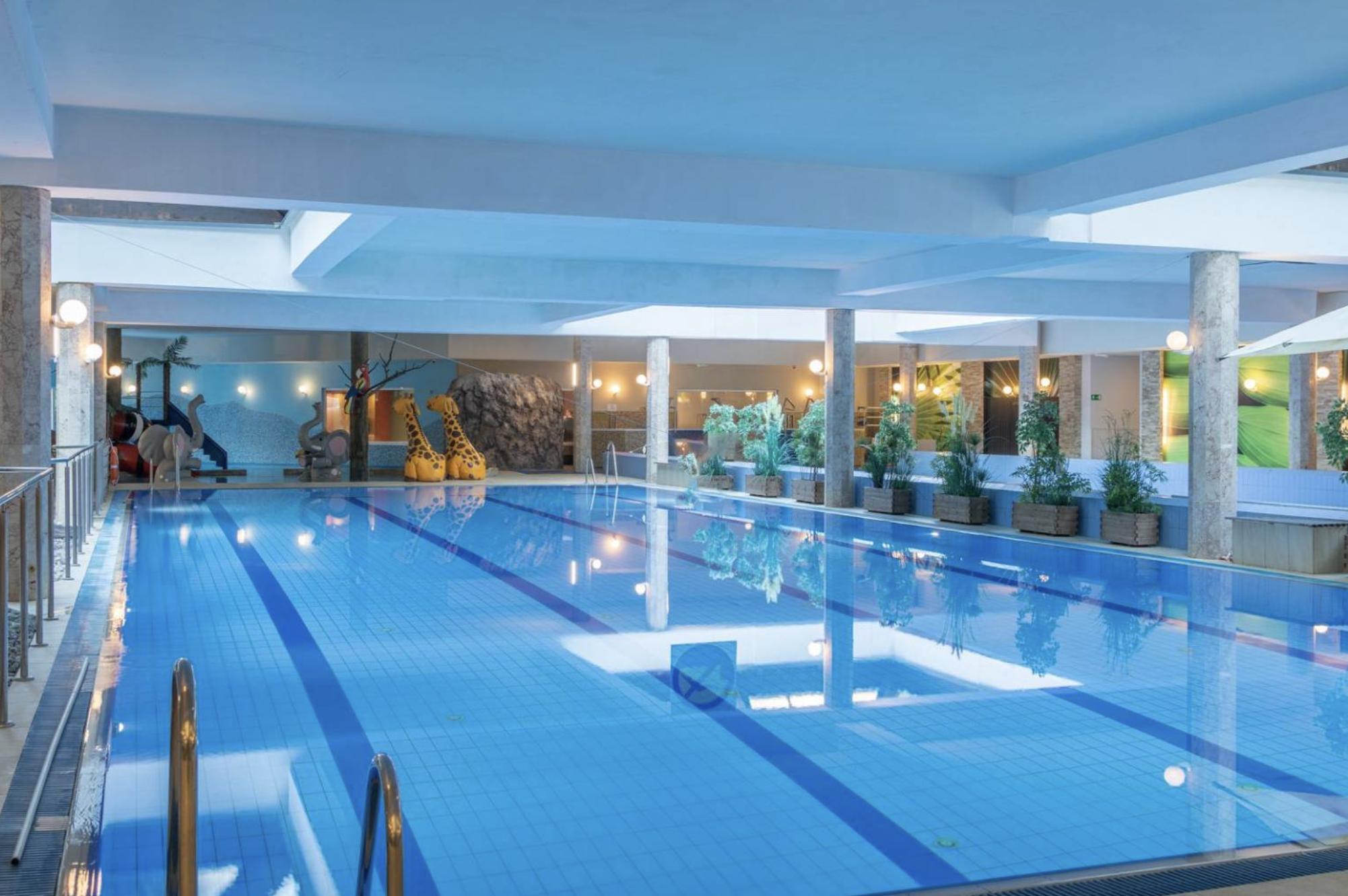kompleksem basenowym z basenami krytymi i odkrytymi, zjeżdżalniami, hydromasażami i strefą termalną,