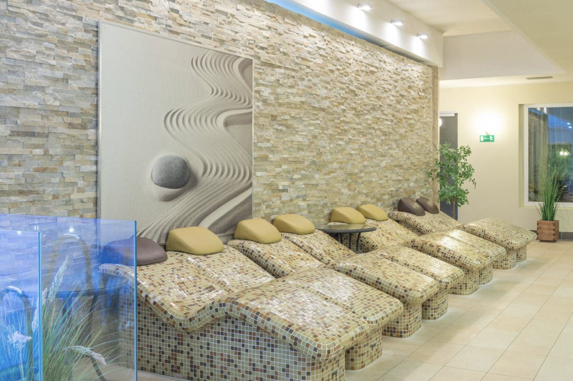 rozbudowaną strefą wellness (sauny, łaźnie, tepidarium, groty, natryski doznań, gabinety odnowy),