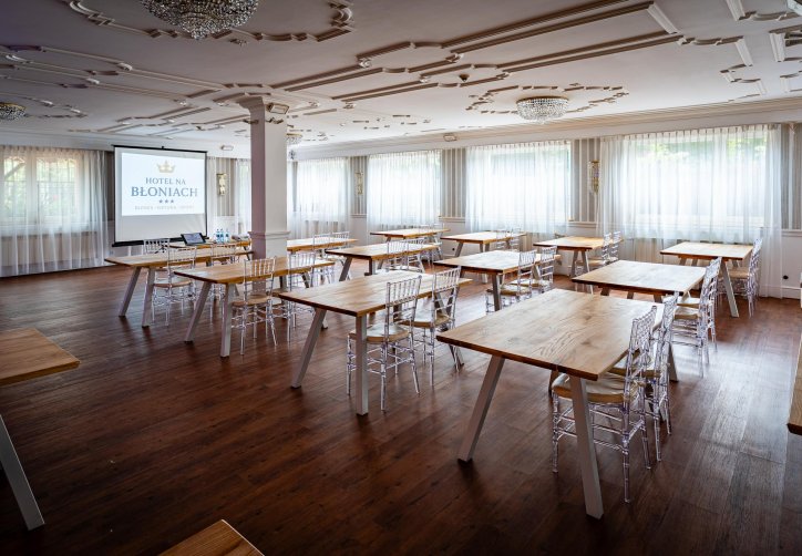 Obiekt posiada cztery sale konferencyjne: Salę A (40 mkw), B (45 mkw), C (50 mkw) oraz Salę Szklaną (236 mkw). Sale wyposażone są w rzutnik, ekran, nagłośnienie, mikrofon, klimatyzację i WiFi. To doskonałe miejsce do organizacji konferencji, szkoleń, spotkań integracyjnych, wesel i przyjęć. Dodatkowo hotel oferuje miejsca parkingowe oraz bezpłatne stanowisko komputerowe w recepcji, zapewniając gościom wygodę podczas pobytu.Hotel na Błoniach