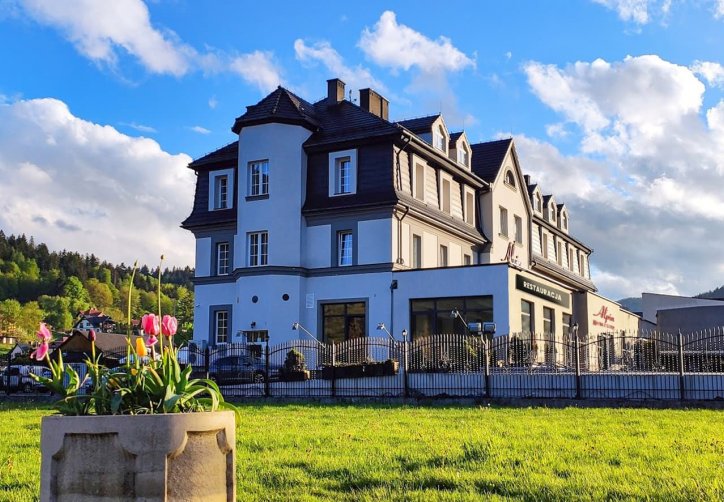 Pierwszą propozycją na naszej liście jest Hotel Alpin w Szczyrku. To trzygwiazdkowy obiekt położony w centrum miasta, tuż przy deptaku nad potokiem Żylicą. W pobliżu obiektu znajdują się stacje narciarskie oraz liczne szlaki górskie. Hotel oferuje 100 miejsc noclegowych w komfortowych pokojach i apartamentach z łazienkami, TV-Sat i bezpłatnym Internetem. Na miejscu działa restauracja z wyśmienitą kuchnią, własna cukiernia oraz popularna kawa, uznawana za jedną z najlepszych w Szczyrku.