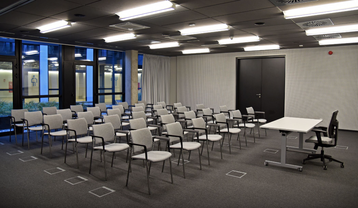 Najmniejsza sala konferencyjna, o powierzchni około 40 metrów kwadratowych, została w pełni wyposażona, aby sprostać wszelkim potrzebom biznesowym. Znajdują się w niej rzutnik, ekran, flipchart, materiały biurowe, dostęp do WiFi oraz klimatyzacja, co gwarantuje sprawną organizację spotkań i prezentacji.