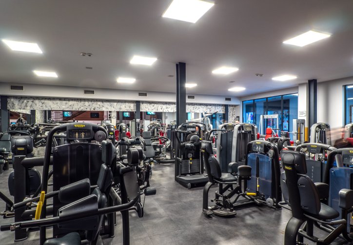 - Siłownia podzielona na strefy cardio, maszyny stosowe, wolne ciężary,