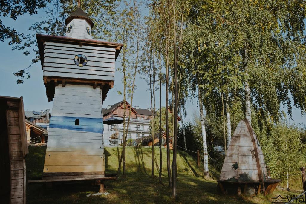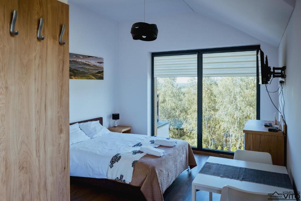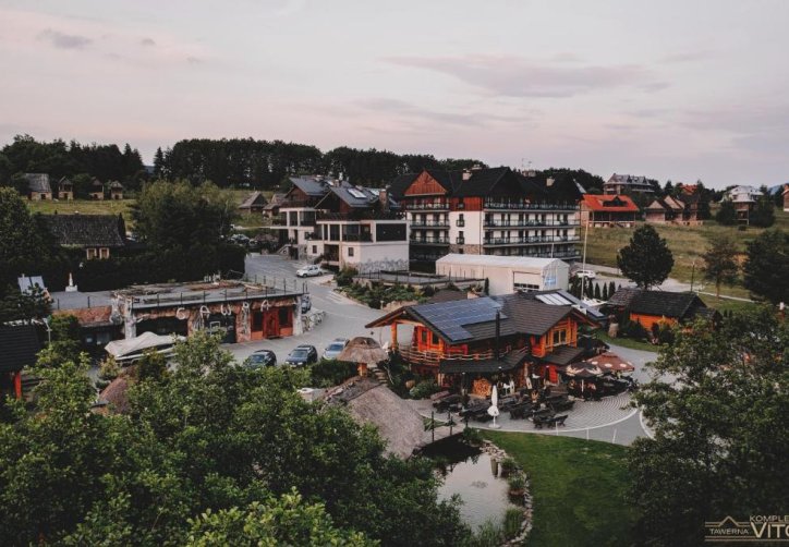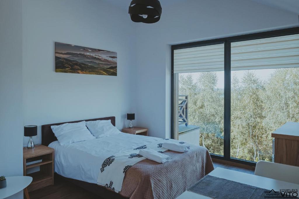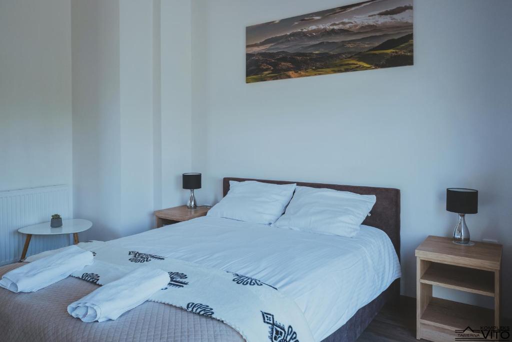 Część noclegowa Kompleksu Tawerna Vito mieści się w nowoczesnym budynku usytuowanym bokiem do linii brzegowej. Duże przeszklenia oraz prywatne tarasy otwierają przestrzeń na panoramę Jeziora Czorsztyńskiego i otaczające je pasma górskie.