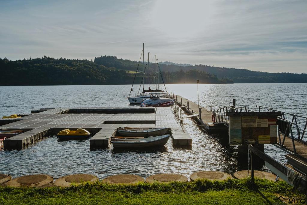 Klimatyzowane apartamenty zapewniają bezpośrednią bliskość wody oraz sąsiedztwo Osady Czorsztyn - zespołu zabytkowych drewnianych willi, który nadaje tej części regionu unikalny charakter architektoniczny. Z tarasów można podziwiać Pieniny oraz Gorce, a przy dobrej widoczności również Tatry i Babią Górę. Apartamenty Vito łączą nowoczesną formę z krajobrazem bez nadmiaru dekoracyjności, z naciskiem na światło, panoramę i funkcjonalność.