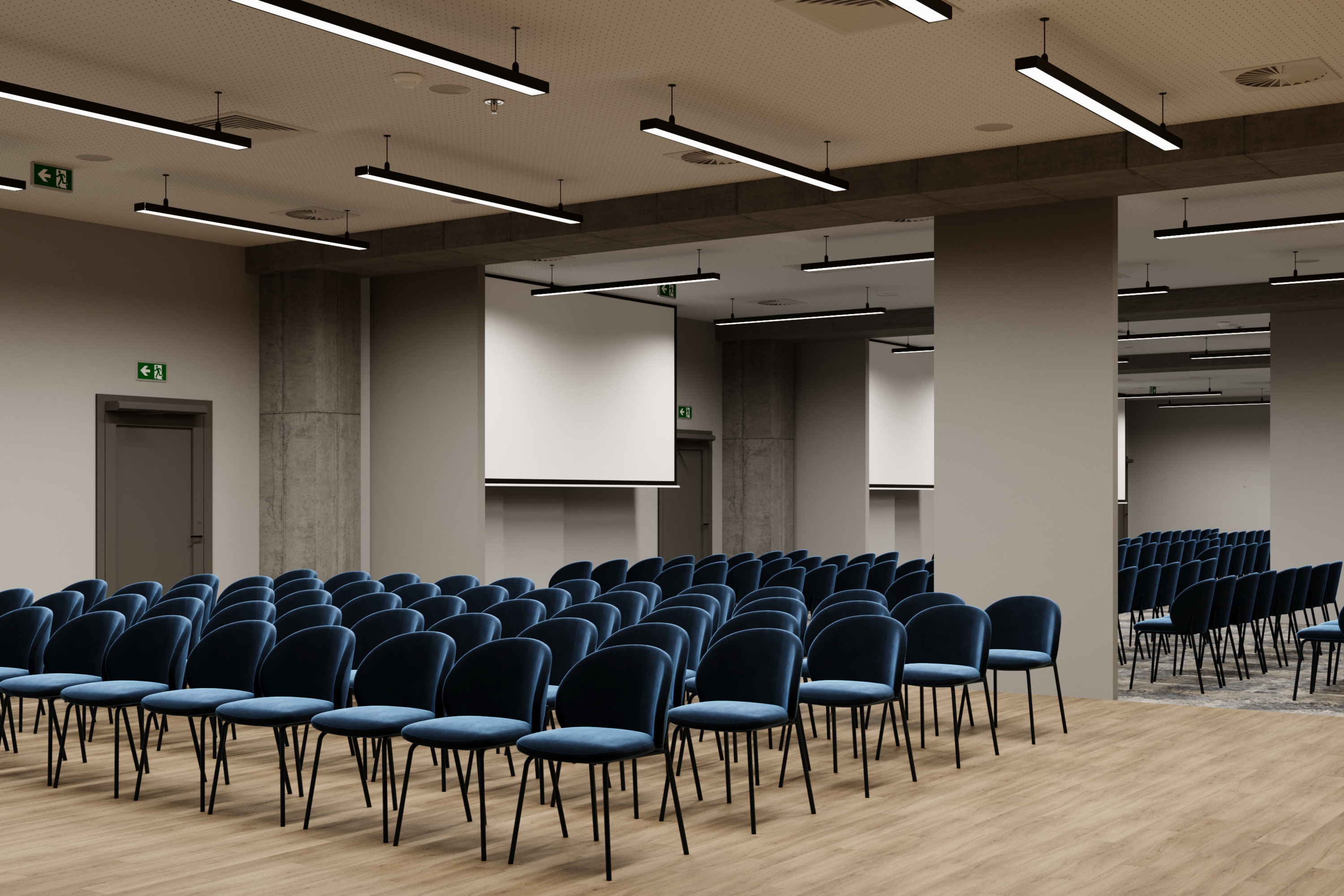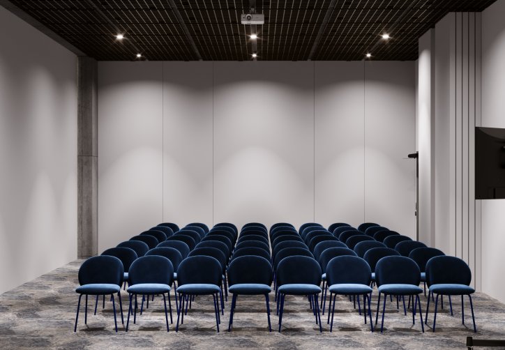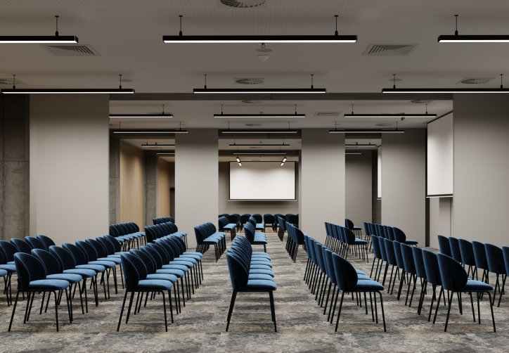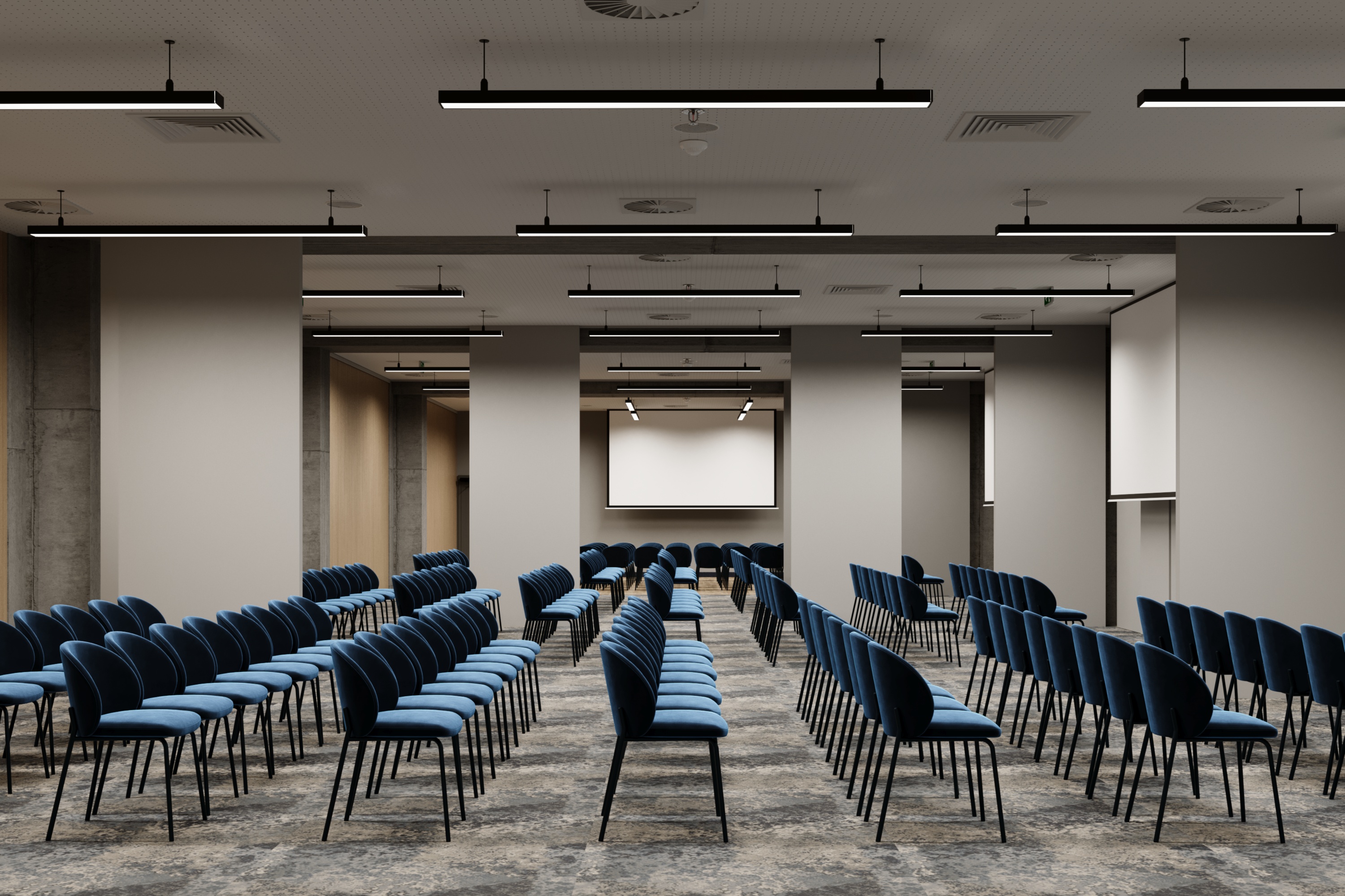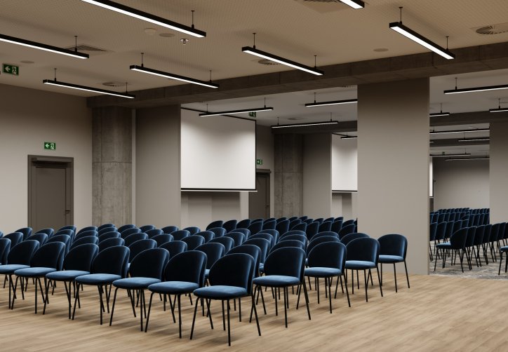 Przestronne, przeszklone foyer stanowi idealne miejsce na networking, wystawy lub przerwy kawowe, tworząc reprezentacyjne tło dla każdego wydarzenia. Sale wyposażone są w nowoczesny sprzęt audiowizualny, profesjonalne nagłośnienie i systemy oświetleniowe, a ich doskonała akustyka gwarantuje najwyższą jakość odbioru.