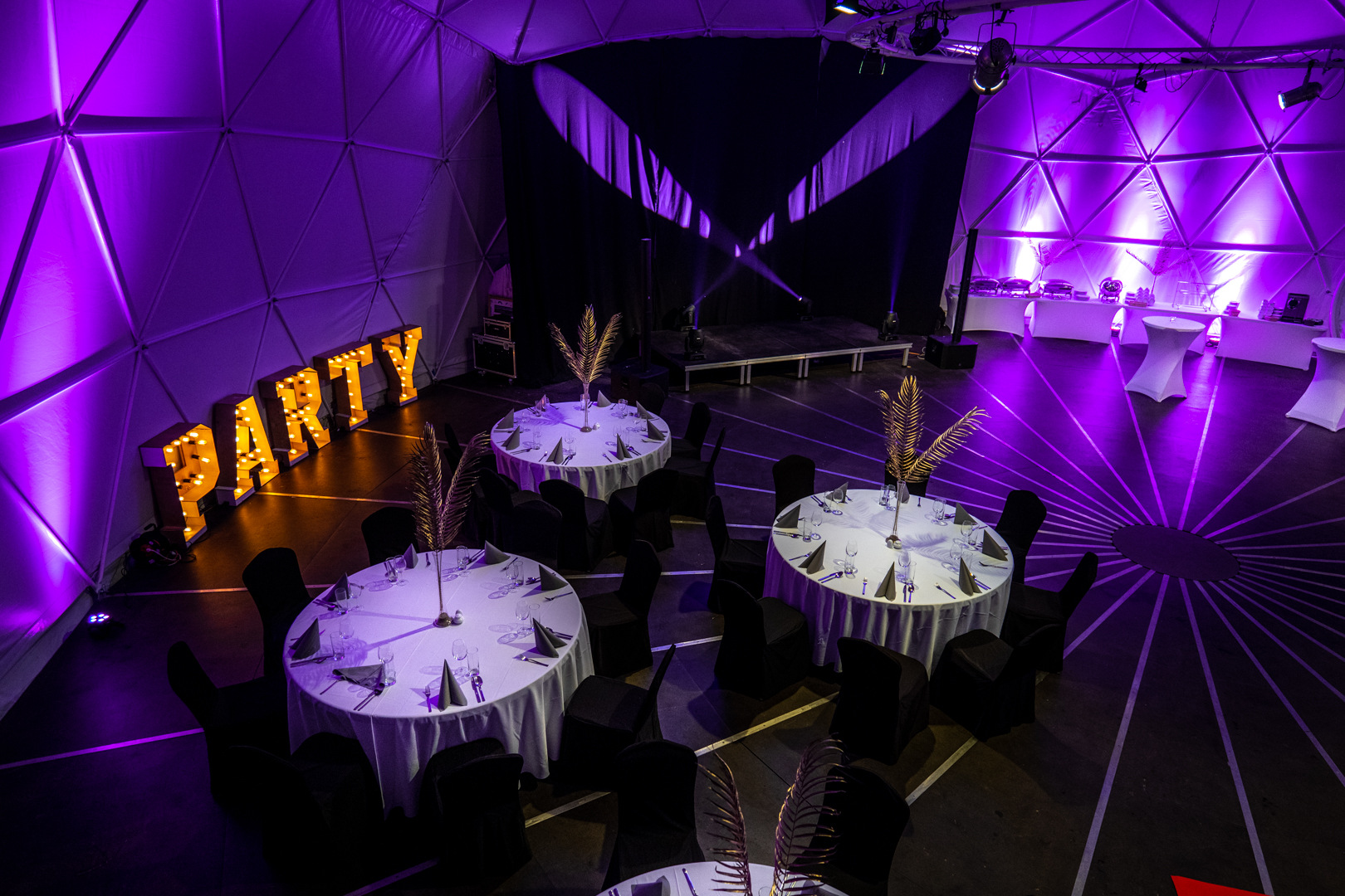 Namiot oferuje doskonałe nagłośnienie i widowiskowe oświetlenie, co stanowi jego dużą zaletę.