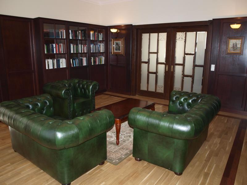 - Sala klubowa: urokliwa przestrzeń idealna do mniej formalnych spotkań, dyskusji czy networkingu. Przytulne wnętrze sprzyja swobodnej atmosferze i efektywnej wymianie pomysłów.