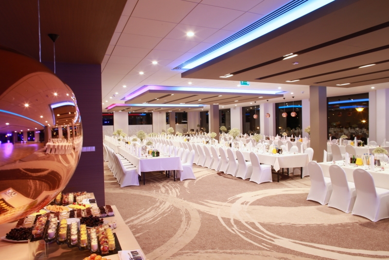 - przestronna sala bankietowa (366 m2) z możliwością połączenia z salą taneczną, wyposażoną w ponad dwustumetrowy parkiet