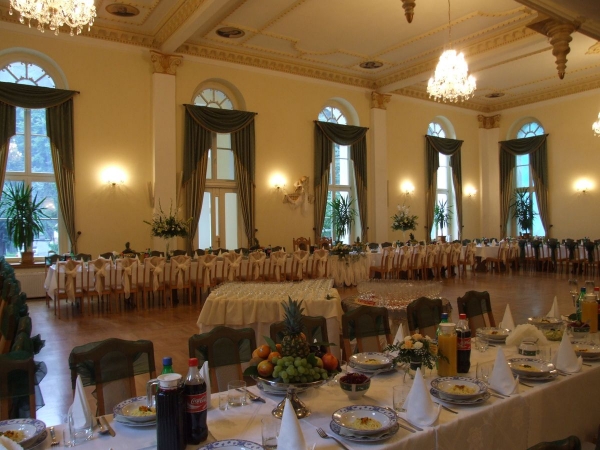 Sala balowa 220 m. kw. dla ok. 140 osób, dowolne konfiguracje układów zależne jedynie od ilości gości, sala klimatyzowana.