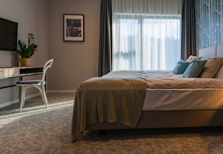 Odpocznia Resort i Las, oferuje swoim Gościom aż trzy rodzaje eleganckich miejsc noclegowych. Pierwszym z nich jest główny budynek hotelu, który zapewnia elegancko urządzone pokoje i apartamenty w wysokim standardzie. Każde pomieszczenie zapewnia najpotrzebniejsze wyposażenie hotelowe oraz niesamowite widoki z okien. Można również wybrać Dom Młynarza - odrestaurowany budynek z duszą, w którym część kameralnych pokoi zachowała oryginalnie belki oraz zapewnia wspaniały widok na las. Na terenie Odpoczni dostępny jest także domek Rybakówka o powierzchni aż 100 metrów kwadratowych, z dwoma sypialniami, oszklonym salonem z aneksem kuchennym i łazienką.