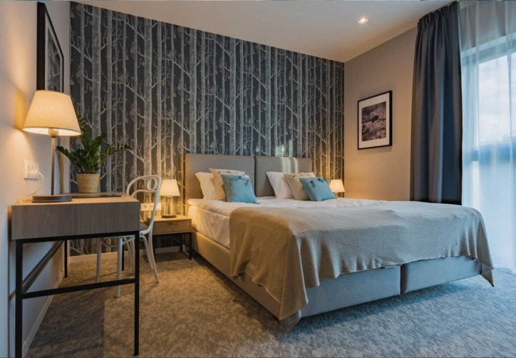 Odpocznia Resort i Las oferuje w sumie 103 nowoczesne, stylowe i bardzo wygodne miejsca noclegowe, rozmieszczone w 36 pokojach i apartamentach. Zaplecze noclegowe gwarantuje wypoczynek z dala od miejskiego zgiełku w eleganckich warunkach. Każdy pokój jest w pełni wyposażony, stylowy i oferuje przepiękny widok. Bez względu na wybór, goście z pewnością będą mogli cieszyć się niezapomnianymi chwilami relaksu i wypoczynku w urokliwym otoczeniu.