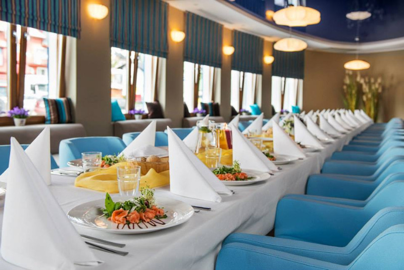 Składniki, z których przygotowywane są dania w hotelowej restauracji, są starannie wyselekcjonowane, stąd pewność, że zjemy tu naprawdę pyszny i świeży posiłek. W menu królują dania kuchni polskiej i europejskiej. Znajdziemy takżę potrawy z wykorzystaniem lokalnych specjałów. Nie mogło zabraknąć również kaszubskich smaków i inspiracji tradycją. Kucharze w Restauracji Lazurowej chętnie gotują posiłki przez długi czas w formie próżniowej, wykorzystując metodę sous-vide.