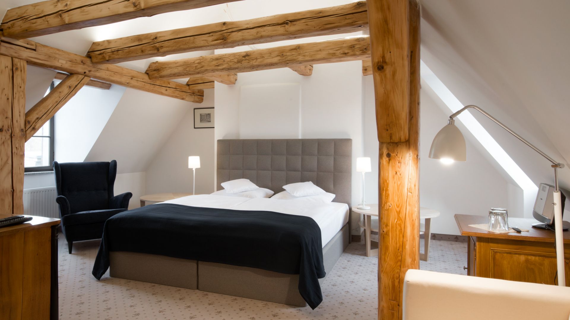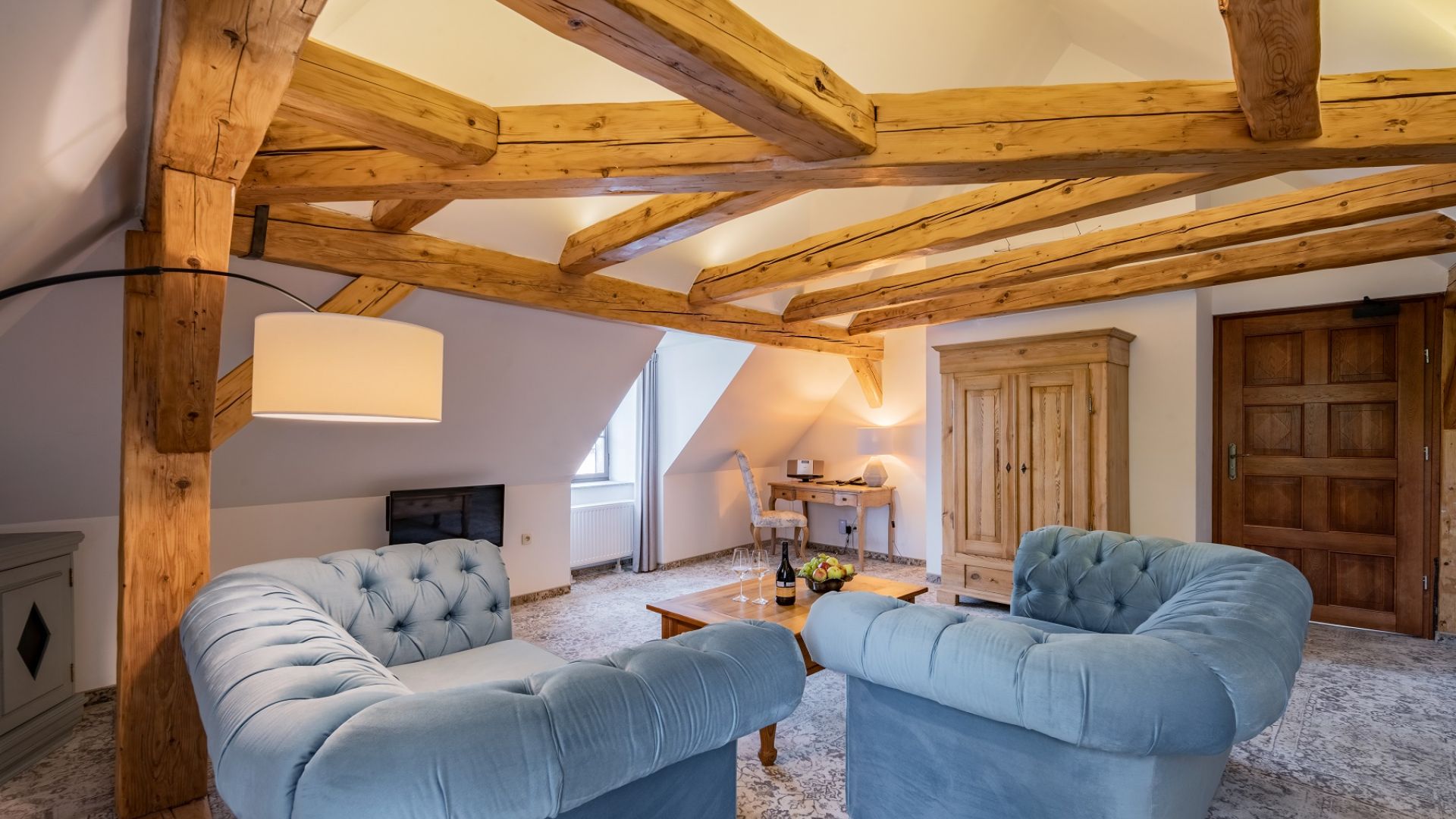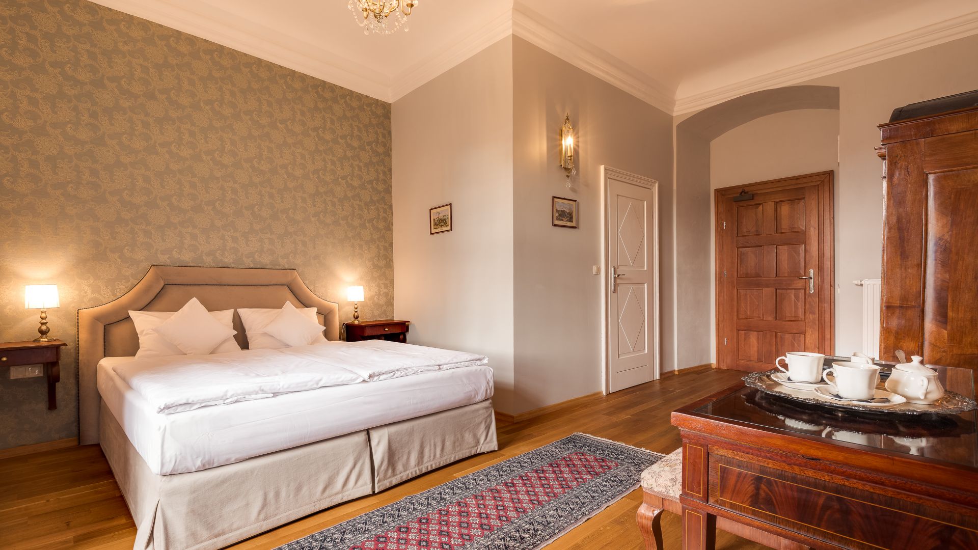 Stylowe pokoje i apartamenty w Zamku Karpniki to miejsca, w których historyczny klimat łączy się z wygodą. Każde wnętrze nawiązuje do dawnych epok, a spokojne kolory i starannie dobrane detale tworzą przytulną, zamkową atmosferę. Wszystkie pokoje znajdują się w głównym budynku, więc każdy Gość może naprawdę poczuć wyjątkowy charakter tego miejsca. Różne standardy i lokalizacje na piętrach pozwalają wybrać idealny wariant pobytu.