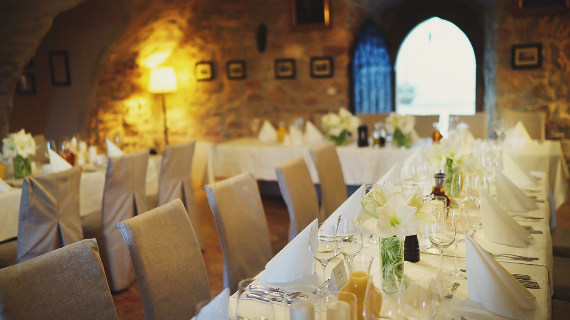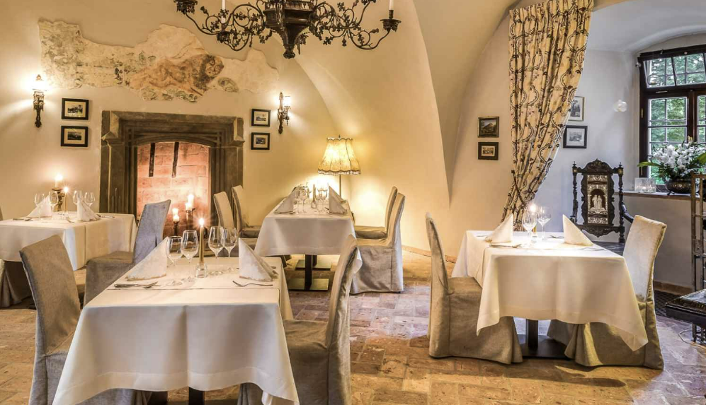 Restauracja mieści się w najstarszej części zamku i tworzą ją trzy sale połączone w amfiladzie. To idealna przestrzeń do organizacji urodzin, chrzcin, komunii, stypy, kameralnego wesela, kolacji biznesowej czy firmowej wigilii. Starannie przygotowane potrawy oraz profesjonalna obsługa sprawiają, że każde wydarzenie nabiera wyjątkowego charakteru.