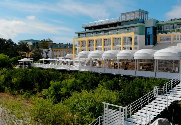 - Restauracja Biała, której menu nawiązuje do unikalnego położenia hotelu i obfituje w dania bazujące na darach morza