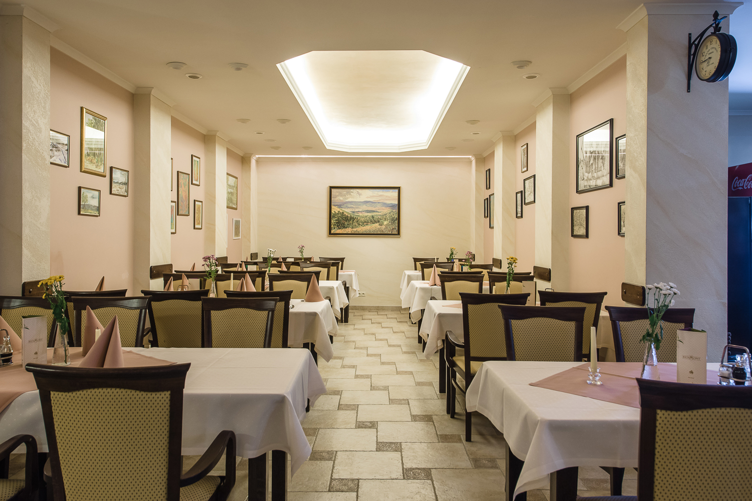 Hotel zapewnia również bogatą ofertę gastronomiczną. W kameralnej i eleganckiej restauracji nie tylko można zjeść pyszne potrawy kuchni polskiej, przygotowanych ze świeżych i lokalnych składników, ale także spędzić miło czas z towarzyszami i porozmawiać na tematy prywatne i biznesowe. Serwowane potrawy są przygotowywane według sprawdzonych receptur, zgodnie z normami HACCP, a wykwalifikowany personel jest zawsze do dyspozycji Gości.