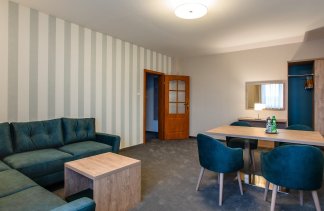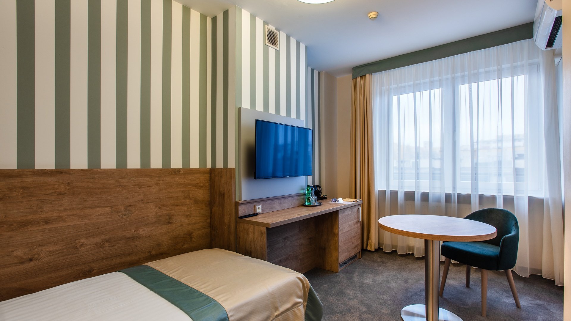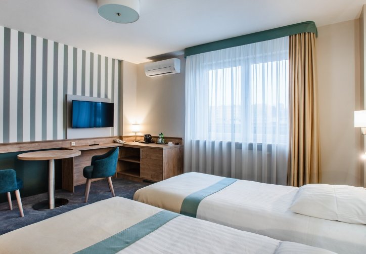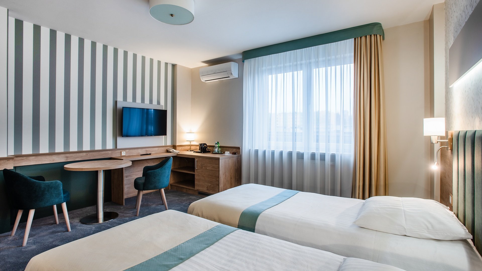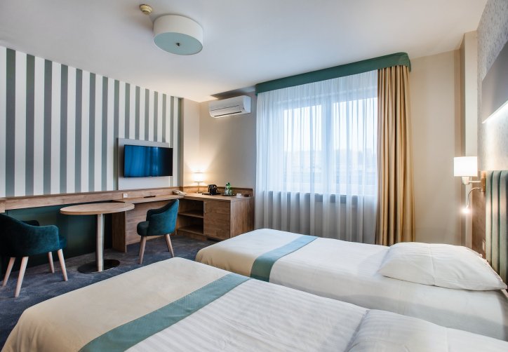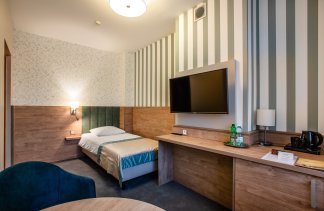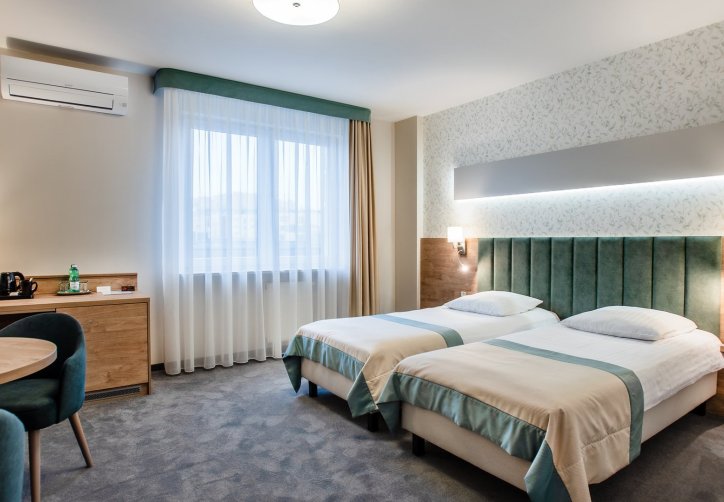W obiekcie dostępne są pokoje jedno-, dwu- i trzyosobowe, a także apartamenty wyposażone w prywatną łazienkę z kabiną prysznicową. Każde pomieszczenie posiada komplet udogodnień, w tym telewizor, telefon, suszarkę do włosów, lodówkę oraz zestaw do przygotowywania kawy i herbaty. Goście mogą również korzystać z bezpłatnego Wi-Fi. Komfort pobytu uzupełnia miękka wykładzina, która ociepla i wycisza przestrzeń.
