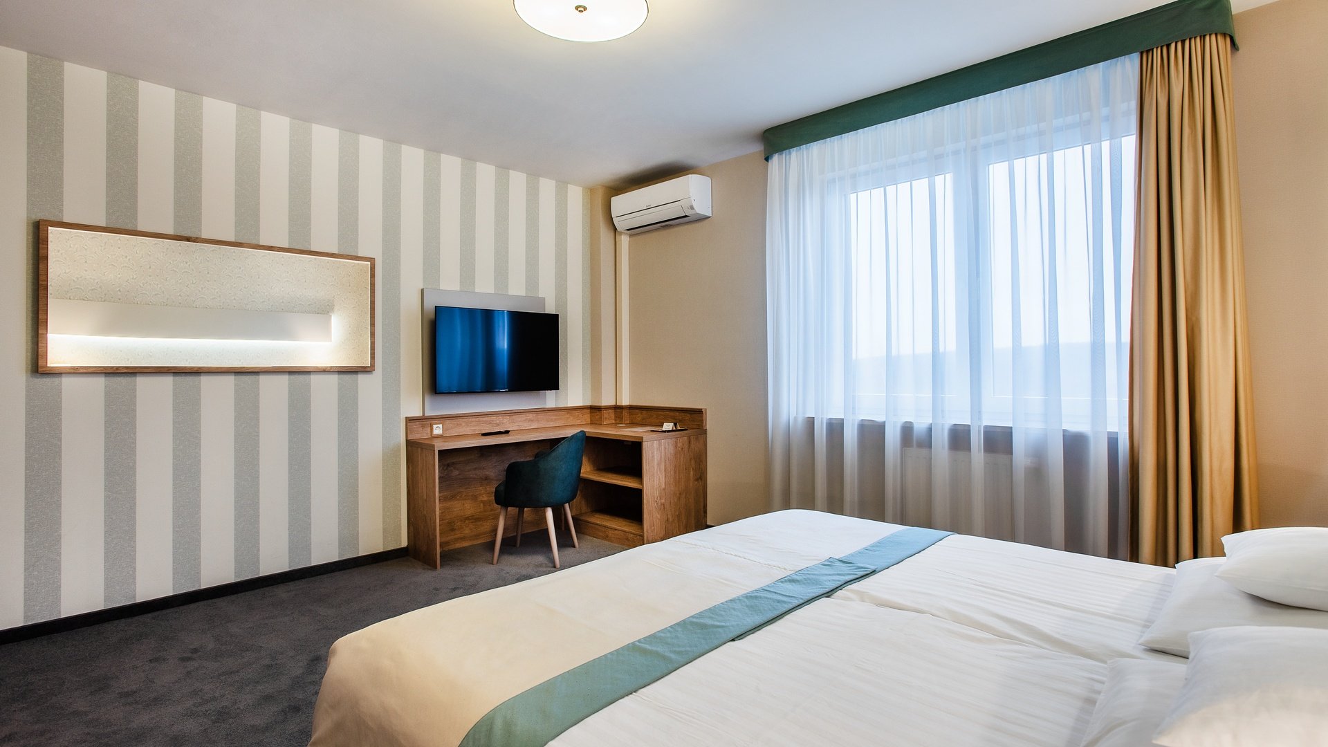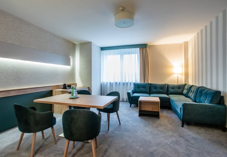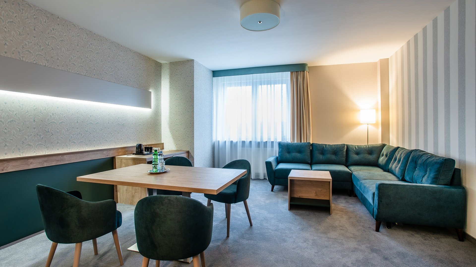 Hotel La Mar oferuje swoim gościom szeroki wybór przytulnych pokoi oraz przestronnych apartamentów, zaprojektowanych z myślą o wygodzie i codziennym komforcie. Wnętrza są jasne, harmonijnie urządzone i utrzymane w stonowanej kolorystyce żółci oraz zieleni, dzięki czemu sprzyjają relaksowi po dniu pełnym obowiązków lub zwiedzania.