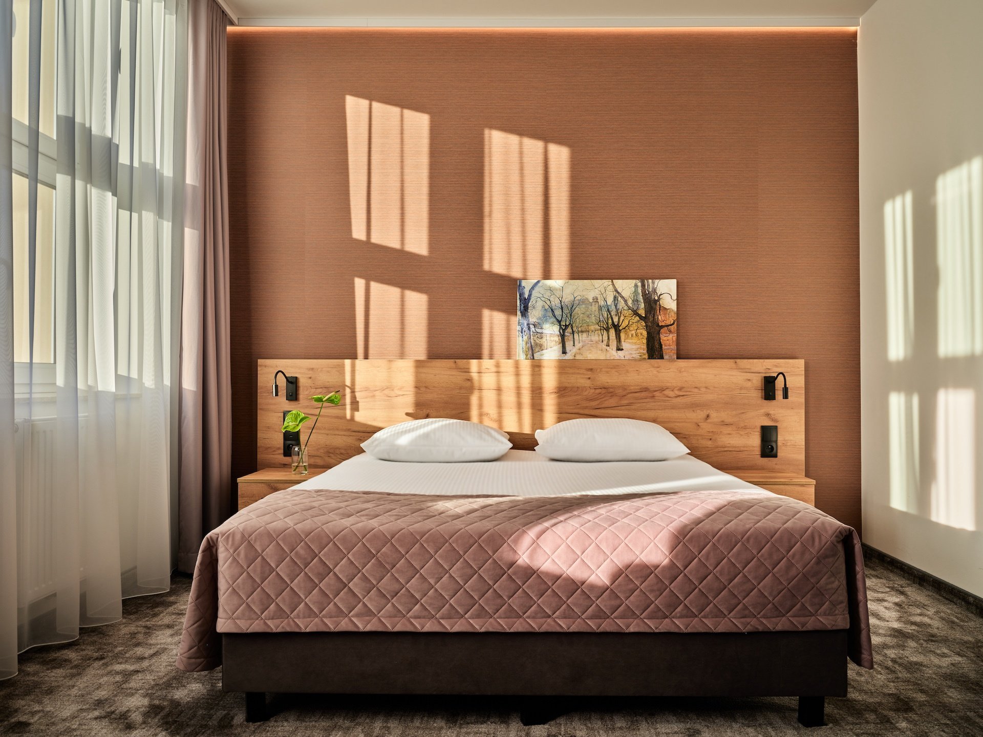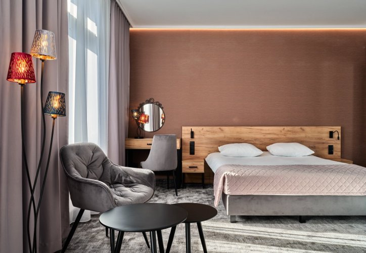 Oferta noclegowa obejmuje trzy kategorie pokoi: Standard, Business Class oraz Suite. Pokoje typu Standard to kompaktowe przestrzenie o metrażu od 18 do 22 metrów kwadratowych, z możliwością łączenia dwóch sąsiadujących pomieszczeń – praktyczne rozwiązanie dla rodzin lub osób podróżujących wspólnie. Business Class zapewniają większą przestrzeń, do 26 metrów kwadratowych, oferując komfortowy układ wnętrza sprzyjający zarówno pracy, jak i wypoczynkowi. Największe, Suite, liczą od 27 do 41 metrów kwadratowych i wyróżniają się przestronnym salonem oraz starannie zaaranżowaną częścią sypialnianą.