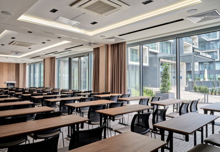 Sale konferencyjne zróżnicowane są pod względem wielkości, pozwalając zarówno na organizację pokaźnych eventów, jak i kameralnych spotkań. Wszystkie sale wyposażone zostały w niezawodne sprzęty multimedialne, takie jak m.in. rzutniki, ekran, flipcharty, tablice multimedialne oraz systemy nagłośnieniowe wraz z mikrofonami. Ponadto, pomieszczenia są klimatyzowane i znajdują się w nich szybkie, bezprzewodowe sieci Internetu.