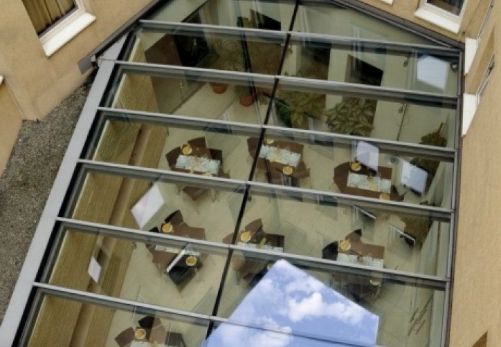 Patio, które łączy się szklanymi drzwiami z Salą Główną, to unikalna przestrzeń hotelowa. To urokliwe miejsce pełne żywych kwiatów doskonale sprawdza się jako strefa relaksu podczas przerw kawowych. Może również służyć jako miejsce kameralnych spotkań biznesowych, tworząc niepowtarzalny klimat dzięki przeszklonemu dachowi, który zapewnia naturalne doświetlenie.