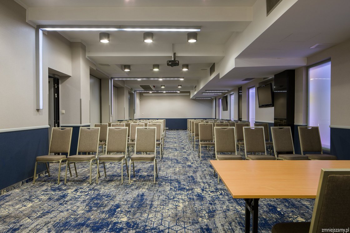 Hotel oferuje kompleksowe wsparcie konferencyjne, włączając w to pełne wyposażenie audiowizualne oraz elastyczność w podziale sal na mniejsze przestrzenie, zgodnie z potrzebami klientów. Dodatkowo, dostępny jest Business Room, wyposażony w niezbędny sprzęt biurowy oraz szybkie łącze internetowe WiFi.