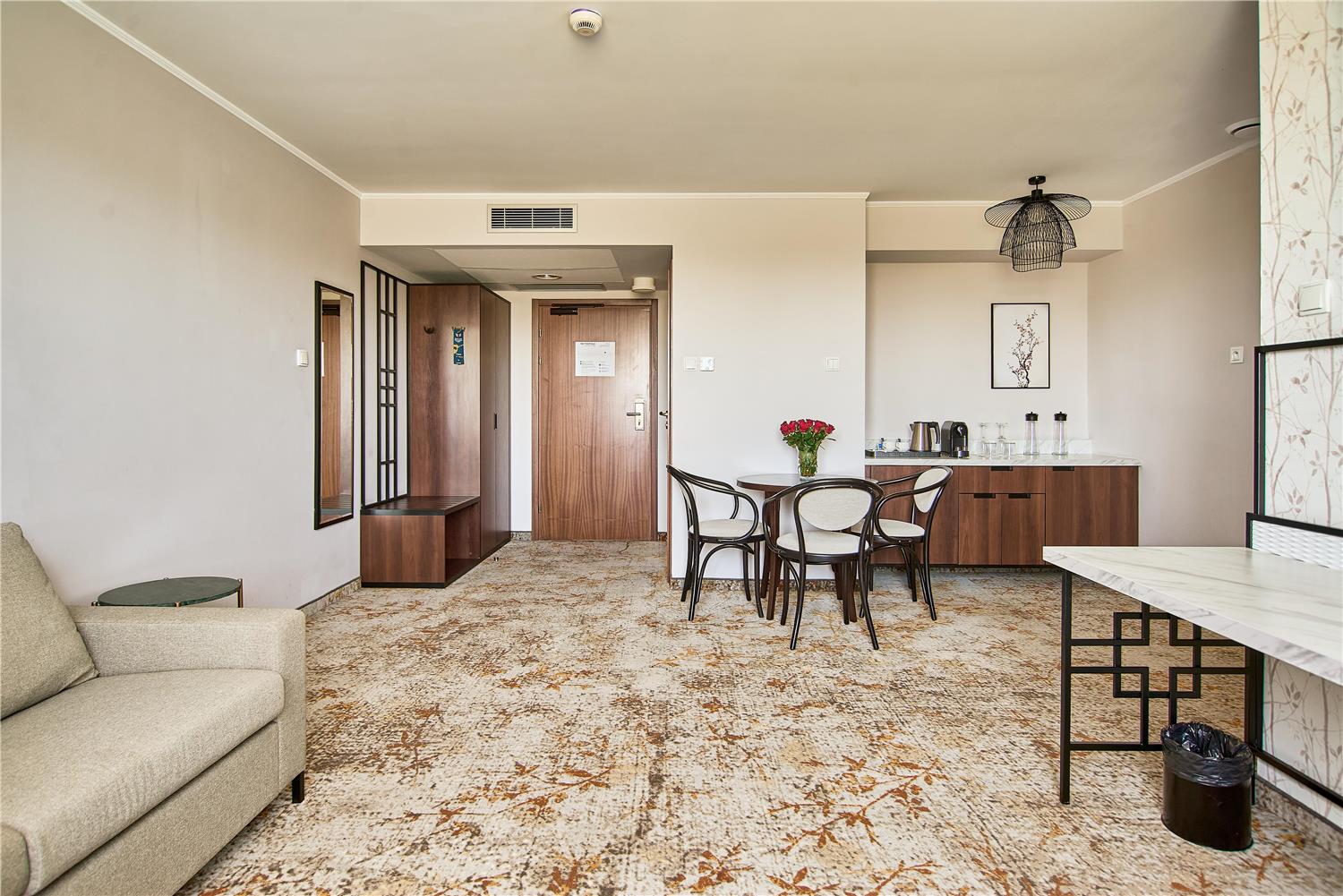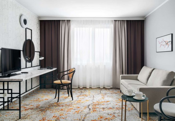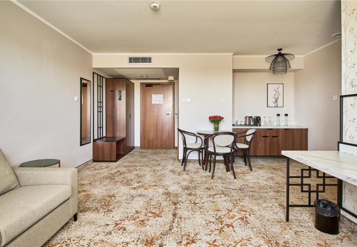 Hotel ma 220 przestronnych pokoi urządzone w stylistyce chińskiego Art Deco, każdy z wydzieloną strefą relaksu, telewizorem, minibarami i stanowiskiem do pracy, co świetnie sprawdza się zarówno po dniu konferencyjnym, jak i po zwiedzaniu Krakowa. Z tego, co zauważyliśmy pokoje są ciche, nawet pomimo lokalizacji przy głównej arterii. Łóżka są wygodne, a design robi przyjemne, niebanalne wrażenie - taki detal, który zapada w pamięć po podróży.