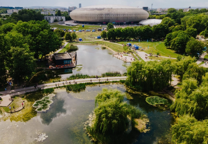 Otoczenie obiektu sprzyja spacerom i odpoczynkowi na świeżym powietrzu, bowiem wokół krakowskiego obiektu znajduje się dużo zielonych terenów oraz szerokie promenady.