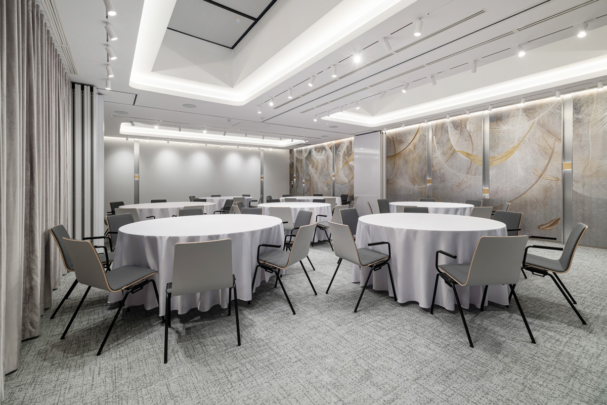 Sala D Platinum (100 metrów kwadratowych) to największa przestrzeń konferencyjna w obiekcie, która może być zaaranżowana zgodnie z wymaganiami wydarzenia - od klasycznych układów szkoleniowych po bankiety i prezentacje.