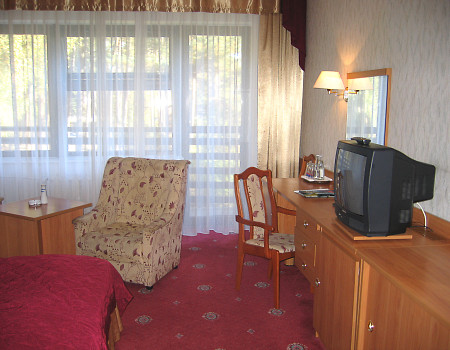 Hotel dysponuje 229 miejscami noclegowymi w apartamentach dwuosobowych i pokojach 1, 2-osobowych oraz 2-osobowych z dostawką, z pełnym węzłem sanitarnym. Wszystkie pokoje wyposażone są w telefon, telewizor, radio, lodówkę.