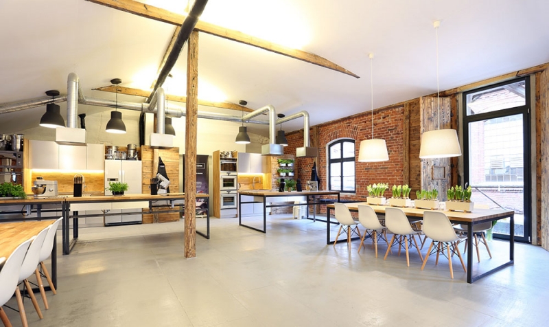 Ponadto, BOOK&COOK dysponuje strefą chilloutu, bar z bogatym asortymentem napojów oraz toalety. Całość jest urządzona w nowoczesnym, industrialnym stylu, który nadaje przestrzeni unikalny charakter.
