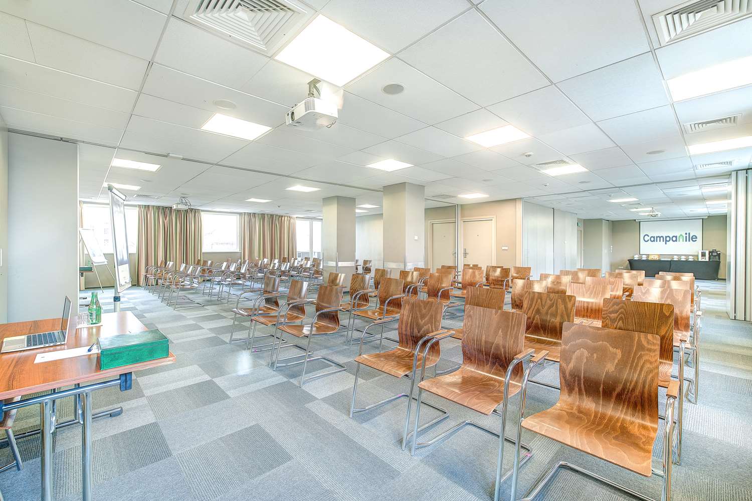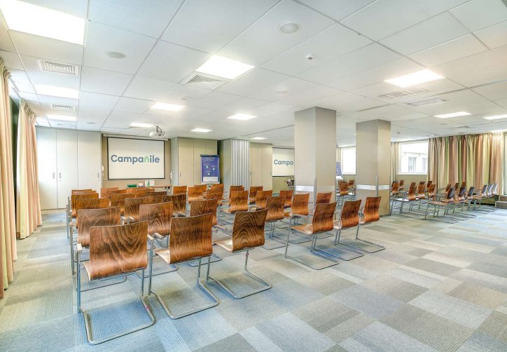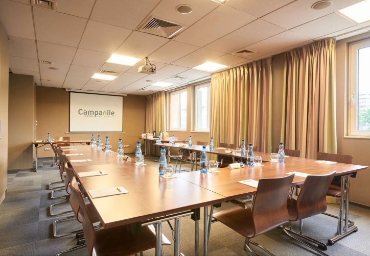 Hotel Campanile Łódź oferuje cztery klimatyzowane sale konferencyjno-bankietowe o łącznej powierzchni 183 m², które mogą pomieścić do 120 osób. Sale wyposażone są w profesjonalny sprzęt audiowizualny, projektory, nagłośnienie oraz dostęp do naturalnego światła z możliwością zaciemnienia.
