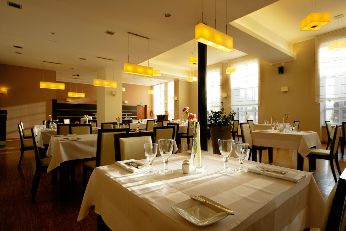 Hotel oferuje eleganckie przestrzenie bankietowe, idealne do zorganizowania wymarzonego przyjęcia weselnego, komunijnego lub uroczystego obiadu w gronie rodzinnym. Restauracja hotelowa to klimatyczne miejsce, które nadaje każdemu wydarzeniu niezapomniany blask, zarówno w przypadku mniejszych, intymnych spotkań, jak i większych uroczystości. Dzięki wyjątkowemu wystrojowi i profesjonalnej obsłudze, każda okazja staje się niezapomnianym przeżyciem.