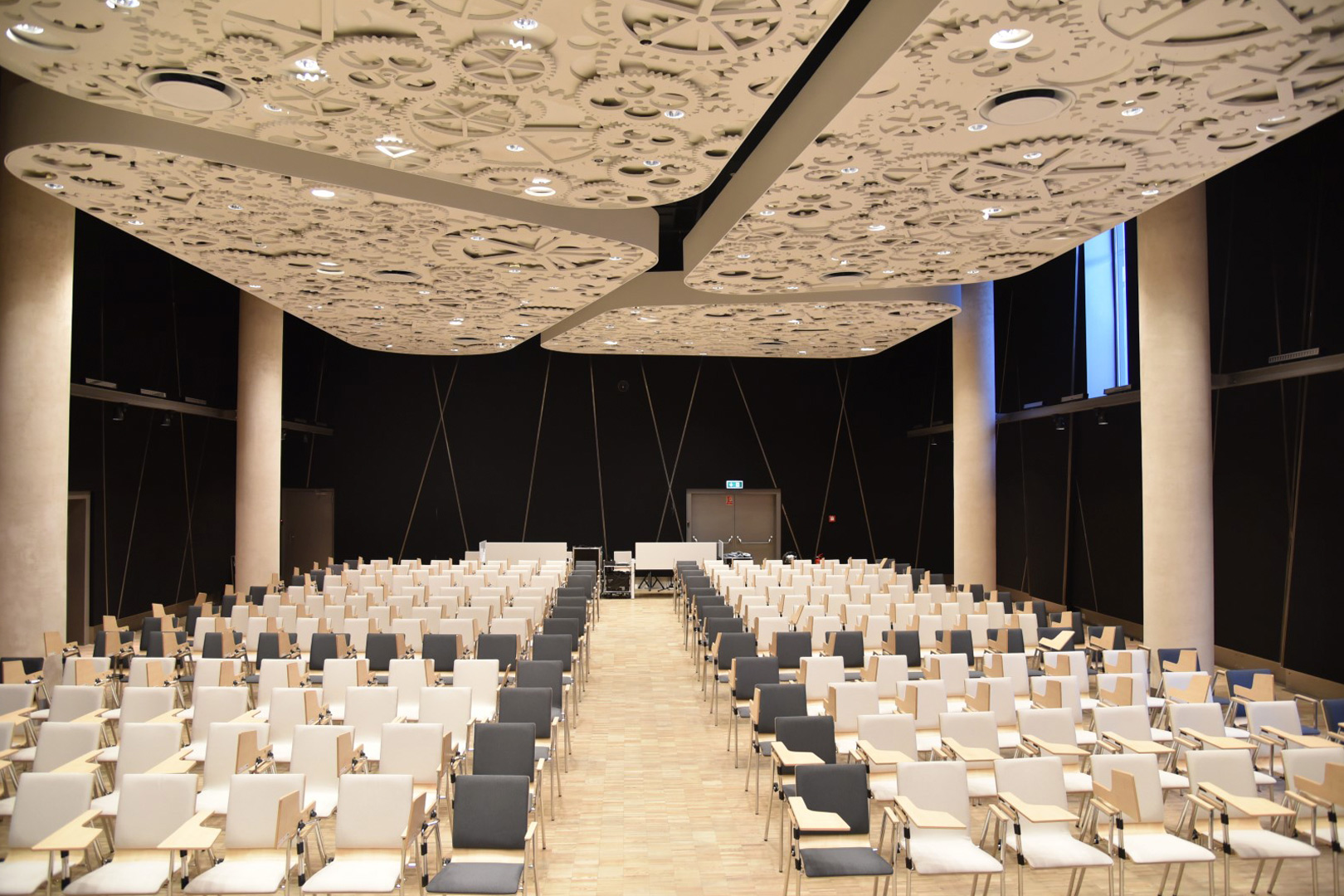 Sala S7 posiada system mobilnych ścian, które pozwalają na dzielenie lub łączenie pomieszczeń w różnych konfiguracjach.