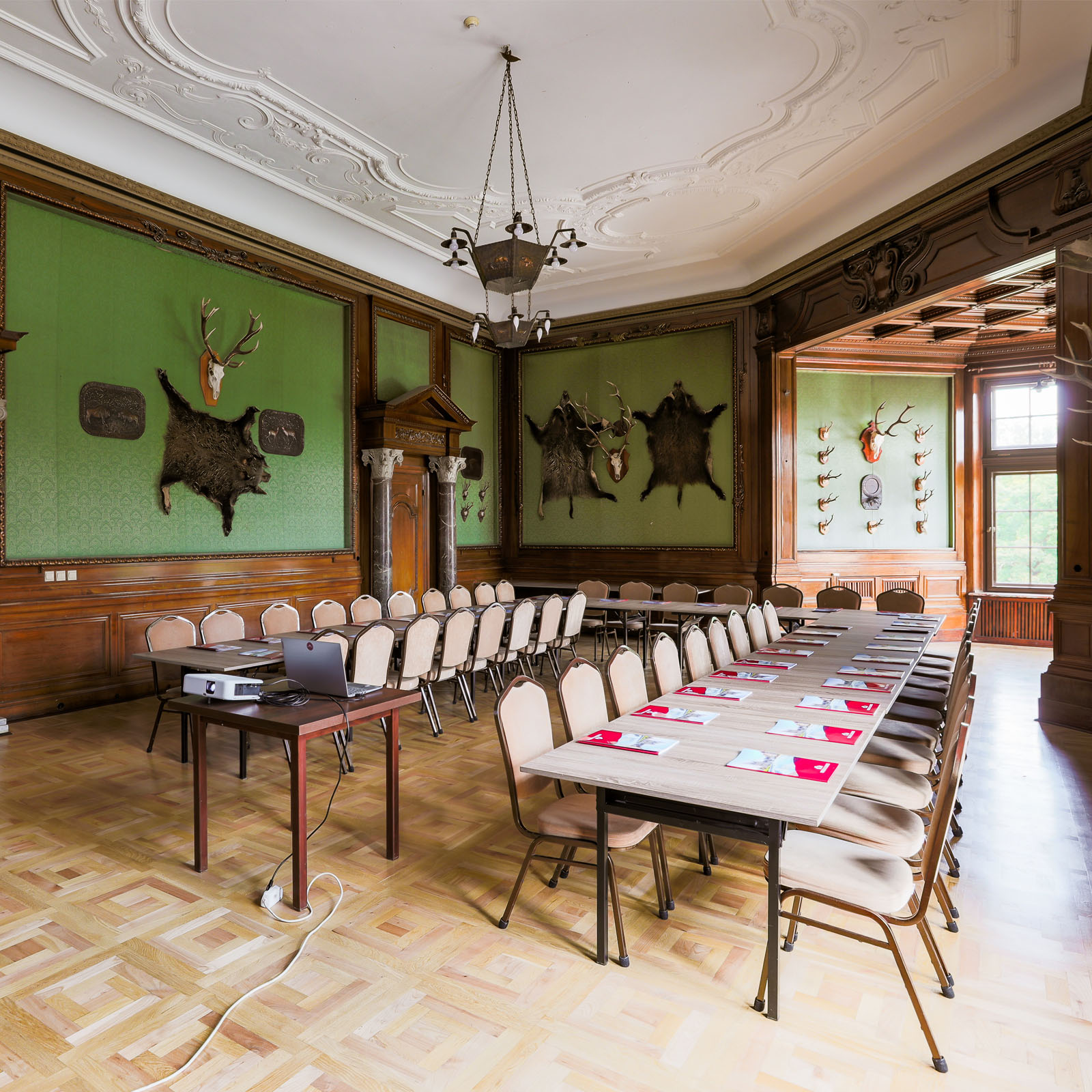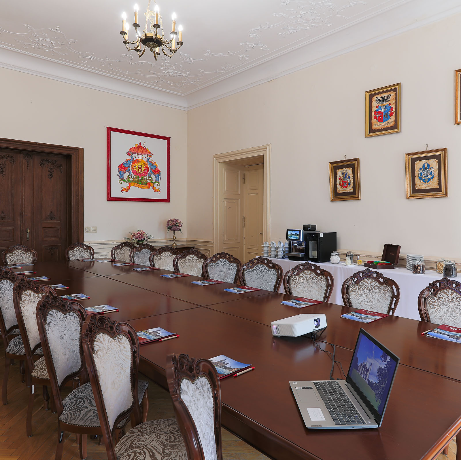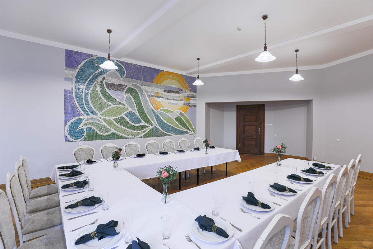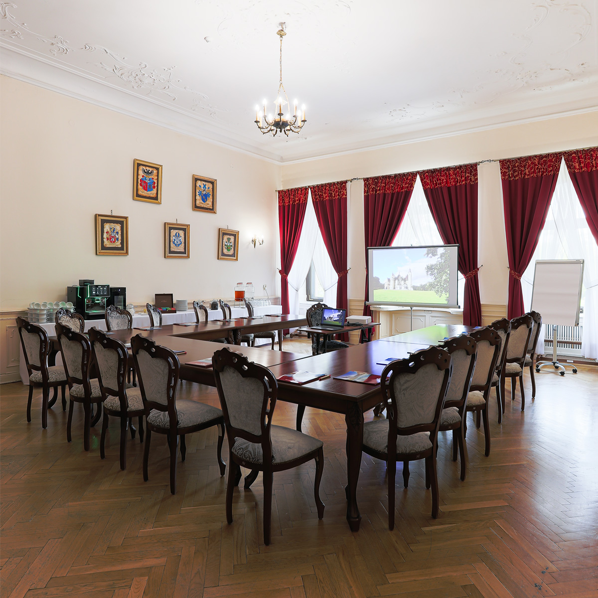 Sale konferencyjne są zróżnicowane nie tylko pod względem wielkości powierzchni,  oświetlenie zapewniają piękne żyrandole. Dostępne jest także nowoczesne wyposażenie: