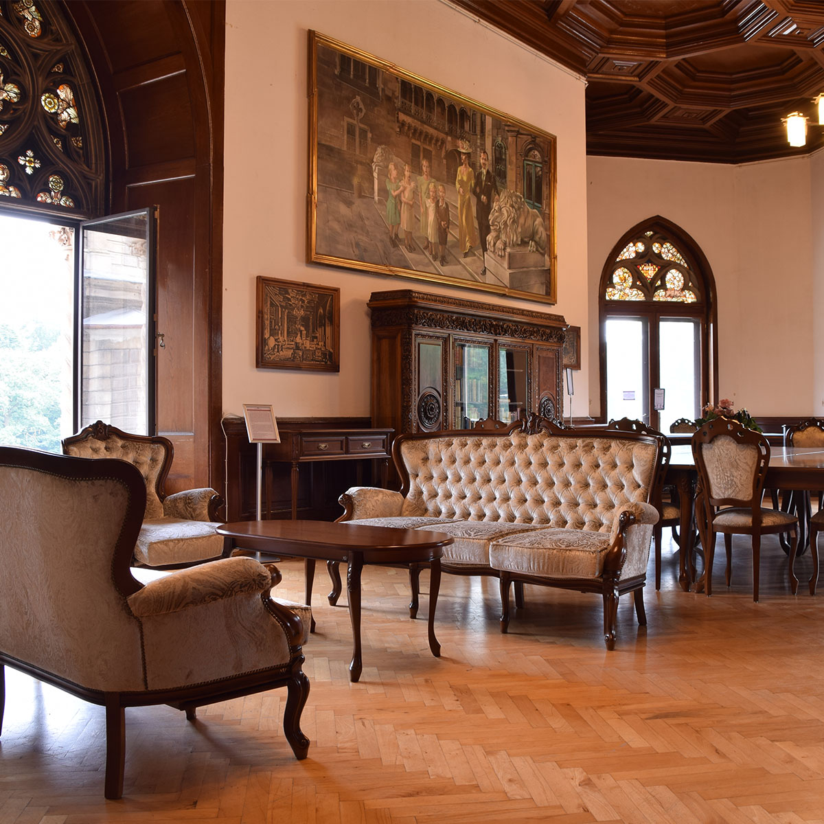 Atutem jest niewątpliwie zamkowe otoczenie. Malowniczy, historyczny park z krętymi uliczkami i stawem to doskonałe miejsce na odprężenie się na świeżym powietrzu i na organizację plenerowych zabaw integracyjnych.  Możliwość zajrzenia do naszego zimowego ogrodu, w którym bogata roślinność zauroczy nie jednego turystę.