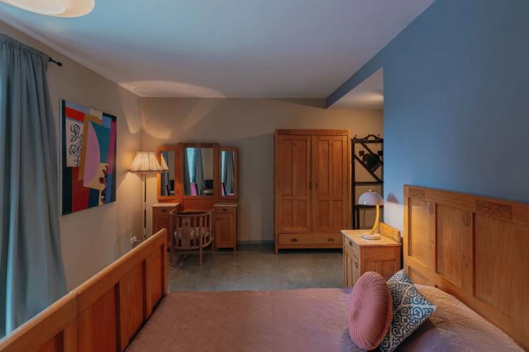 Każdy z ośmiu pokoi w głównym budynku wyróżnia się indywidualnym wystrojem, w którym minimalizm spotyka się z naturalnymi akcentami, tworząc harmonijną przestrzeń do wypoczynku. Drewniane elementy i surowe wykończenia dodają ciepła nowoczesnym wnętrzom, a panoramiczne okna wpuszczają mnóstwo światła, podkreślając związek z otaczającą przyrodą.