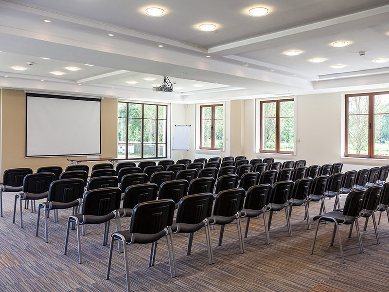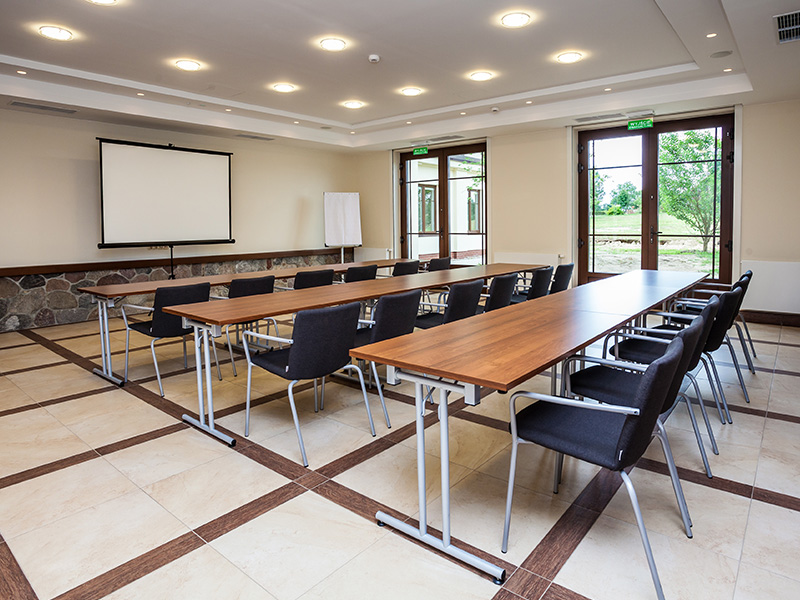 Na podstawowym wyposażeniu znajdują się: rzutnik, ekran oraz flipchart. Część mniejszych sal posiada zabytkowy charakter, zachwycając gości zdobieniami z naturalnego drewna. Podczas konferencji i bankietów idealnie sprawdza się namiot eventowy znajdujący się w ogrodzie. Na 500 m2 powierzchni można przygotować spotkanie dla nawet 500 osób. Namiot posiada dodatkowe oświetlenie halogenowe, a podczas ciepłych okresów możliwe jest usunięcie jego ścian.