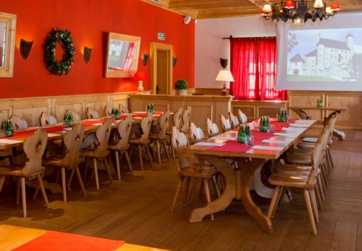 Sala biesiadna Restauracji Zamek Bobolice to wielofunkcyjne pomieszczenie, które z łatwością można przekształcić w funkcjonalną salę konferencyjną. W zależności od ustawienia stołów sala może pełnić funkcje szkoleniowe, seminaryjne, prezentacyjne i wiele innych. Sala wyposażona jest we wszelki sprzęt niezbędny do przeprowadzenia profesjonalnego spotkania.