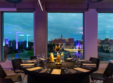 Restauracja połączona z hotelem, oferująca elegancką przestrzeń biznesową tuż obok stacji PKP w Opolu.