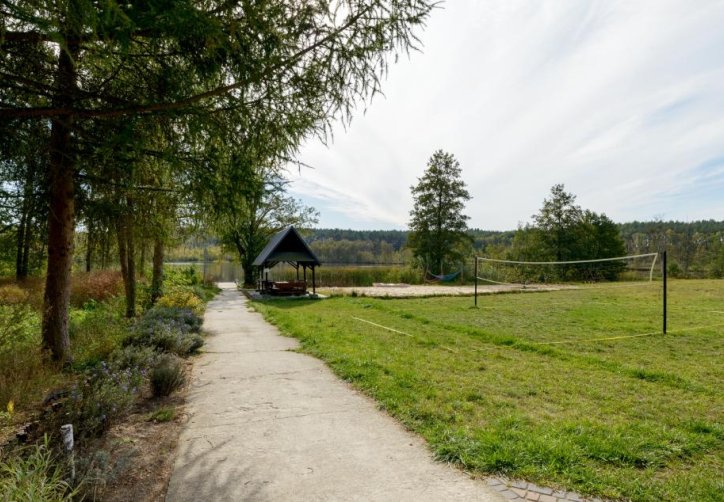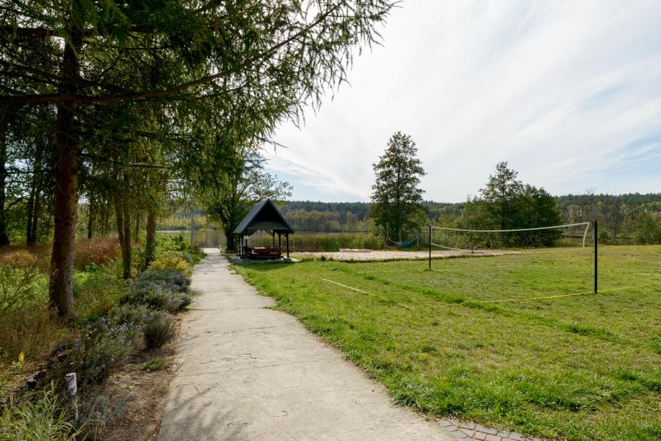 Na spragnionych odpoczynku czekają ustronne miejsca do grillowania i ogniska, oświetlona altana nad jeziorem oraz prywatna plaża z pomostami – wszystko w otoczeniu ciszy i natury.