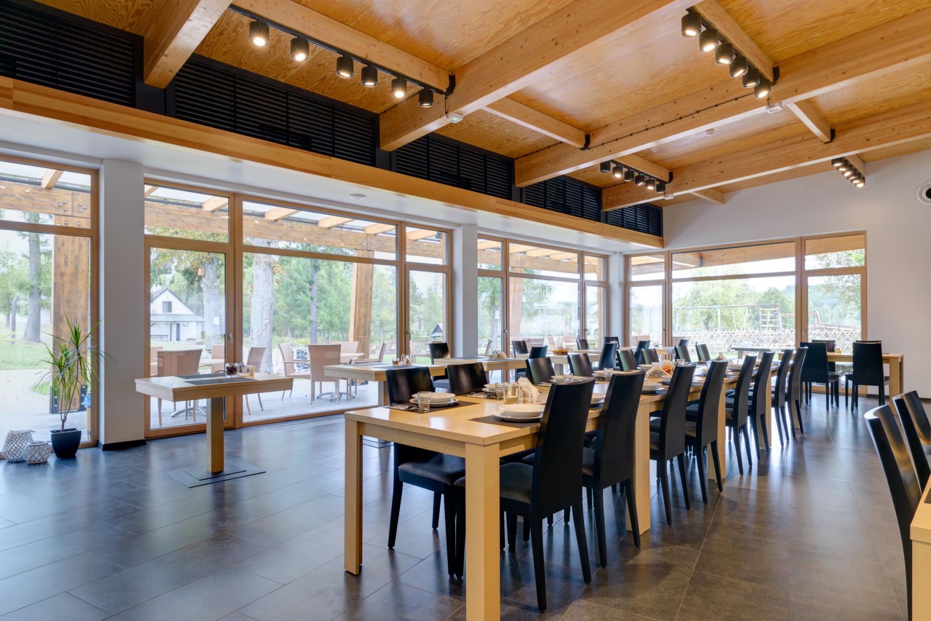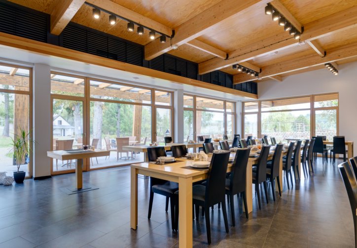 Przez cały rok goście mogą korzystać z eleganckiej restauracji à la carte oraz kameralnego baru, ciesząc się spokojną atmosferą i widokiem na leśny krajobraz.