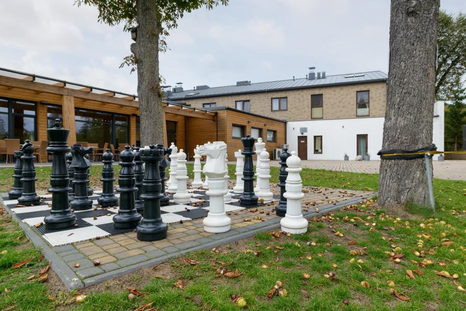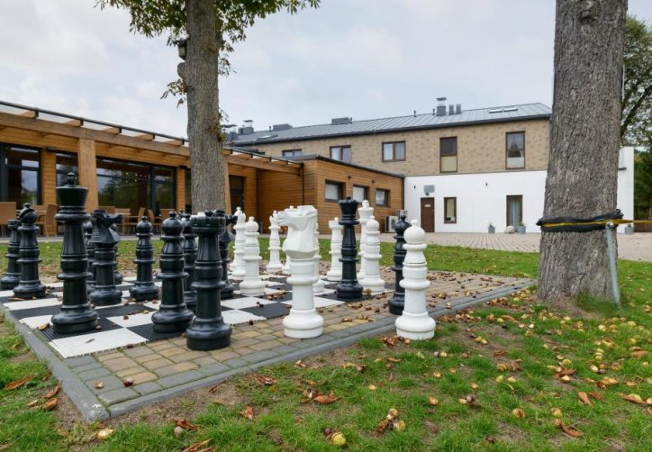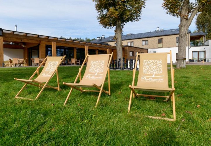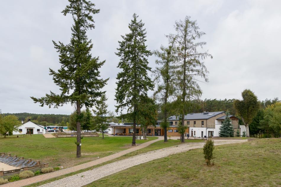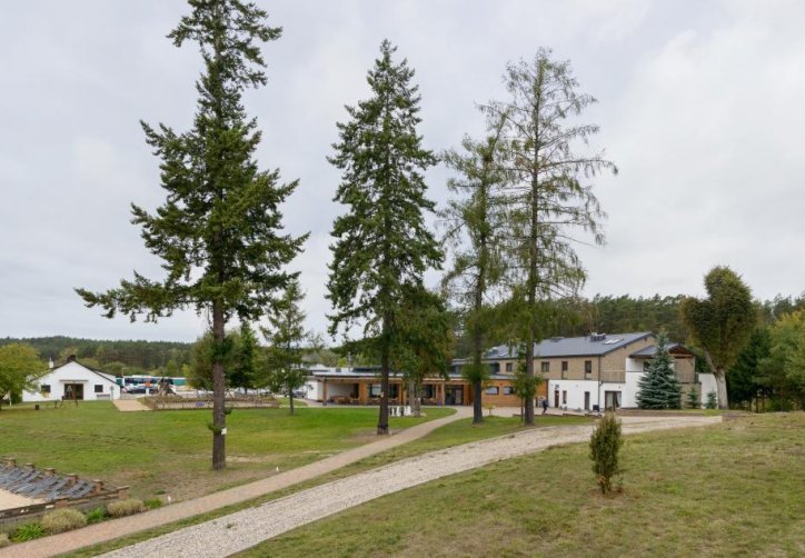 Obiekt oferuje różnorodne formy zakwaterowania, w tym komfortowe pokoje oraz klimatyczne domki w lesie tuż przy linii brzegowej. Dla aktywnych gości przygotowano zaplecze sportowe, obejmujące m.in. kort tenisowy i boisko do siatkówki. Rezydencja stwarza doskonałe warunki zarówno do relaksu, jak i aktywnego wypoczynku w otoczeniu przyrody.