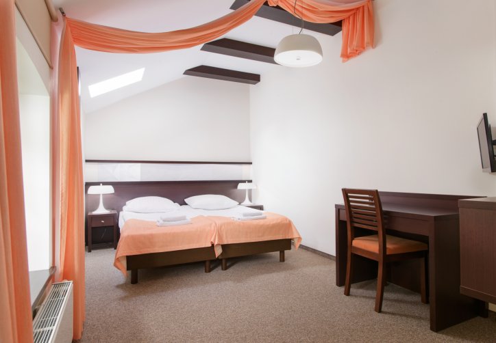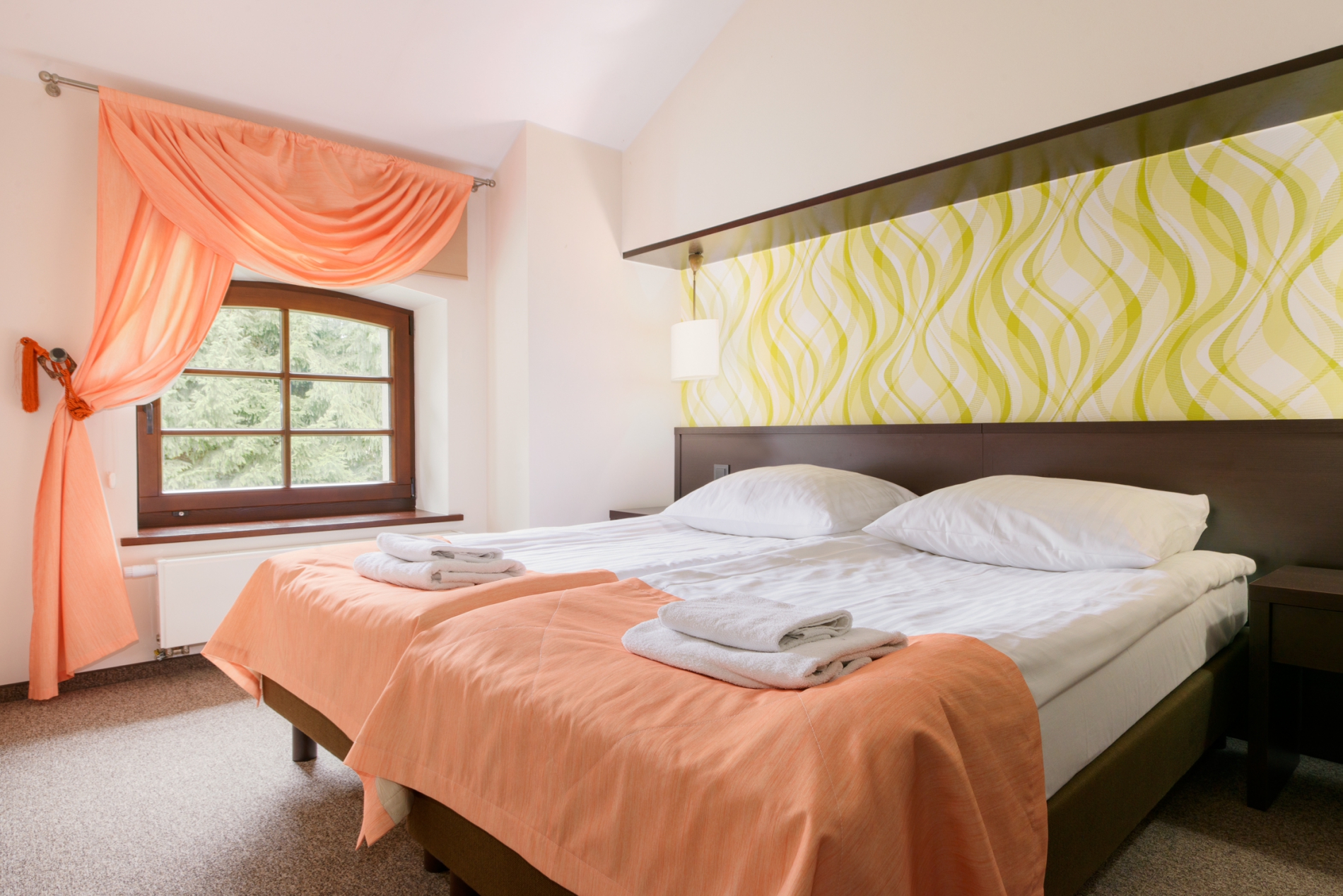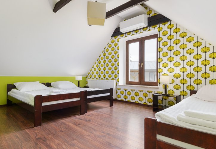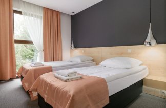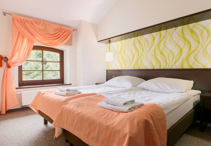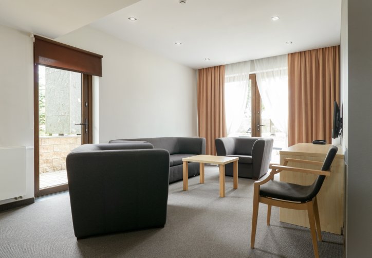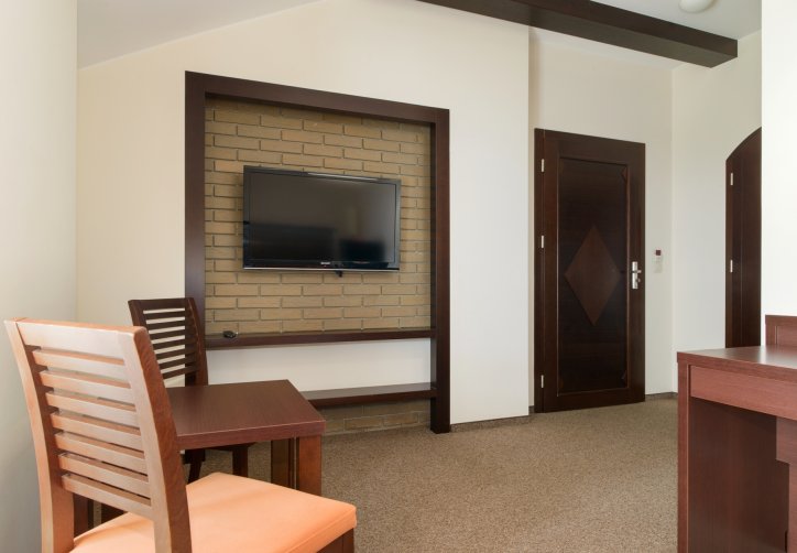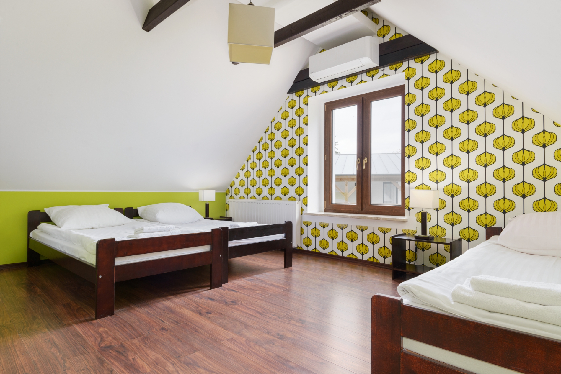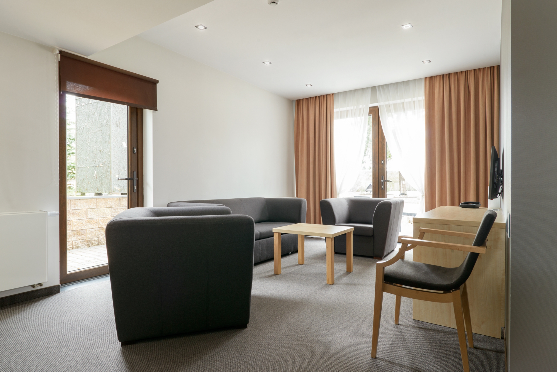 Do dyspozycji gości oddano 20 przestronnych pokoi dwuosobowych z prywatnymi łazienkami, z czego dwa przystosowane są do potrzeb osób z niepełnosprawnościami. Ponadto obiekt oferuje cztery komfortowe apartamenty dwupokojowe, składające się z sypialni, pokoju dziennego z rozkładaną sofą i telewizorem oraz łazienki – idealne rozwiązanie dla rodzin z dziećmi lub gości ceniących sobie dodatkową przestrzeń.
